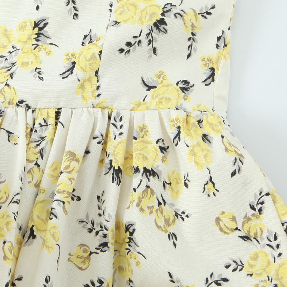 Bow, Floral Pattern, Pleats, Printing, Yellow Roses, Lace