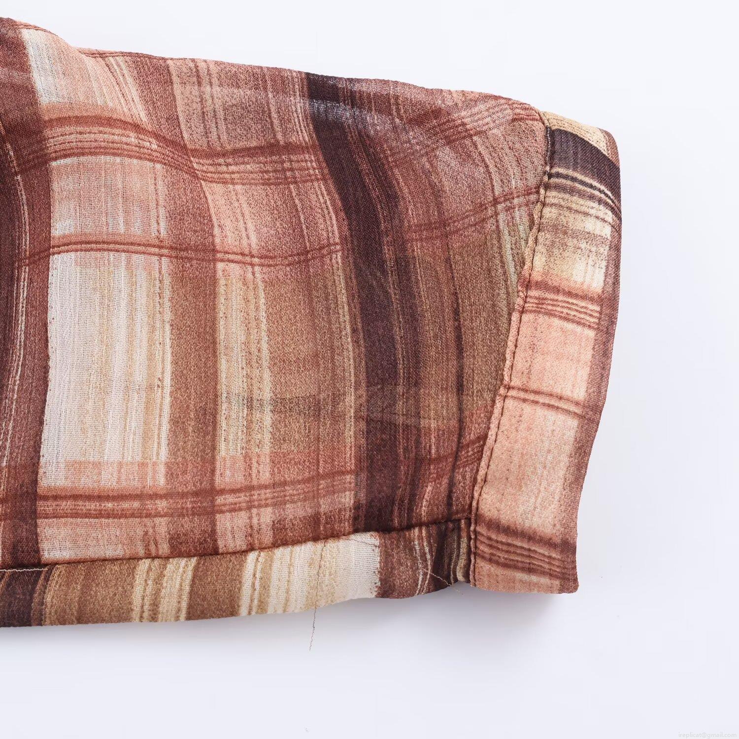 Vintage Brown Plaid Midi Dress For Women Long Sleeve Pleated A-Line Vacation Dress With Black Waist Belt Retro Elegant Casual Long Sleeve Dresses