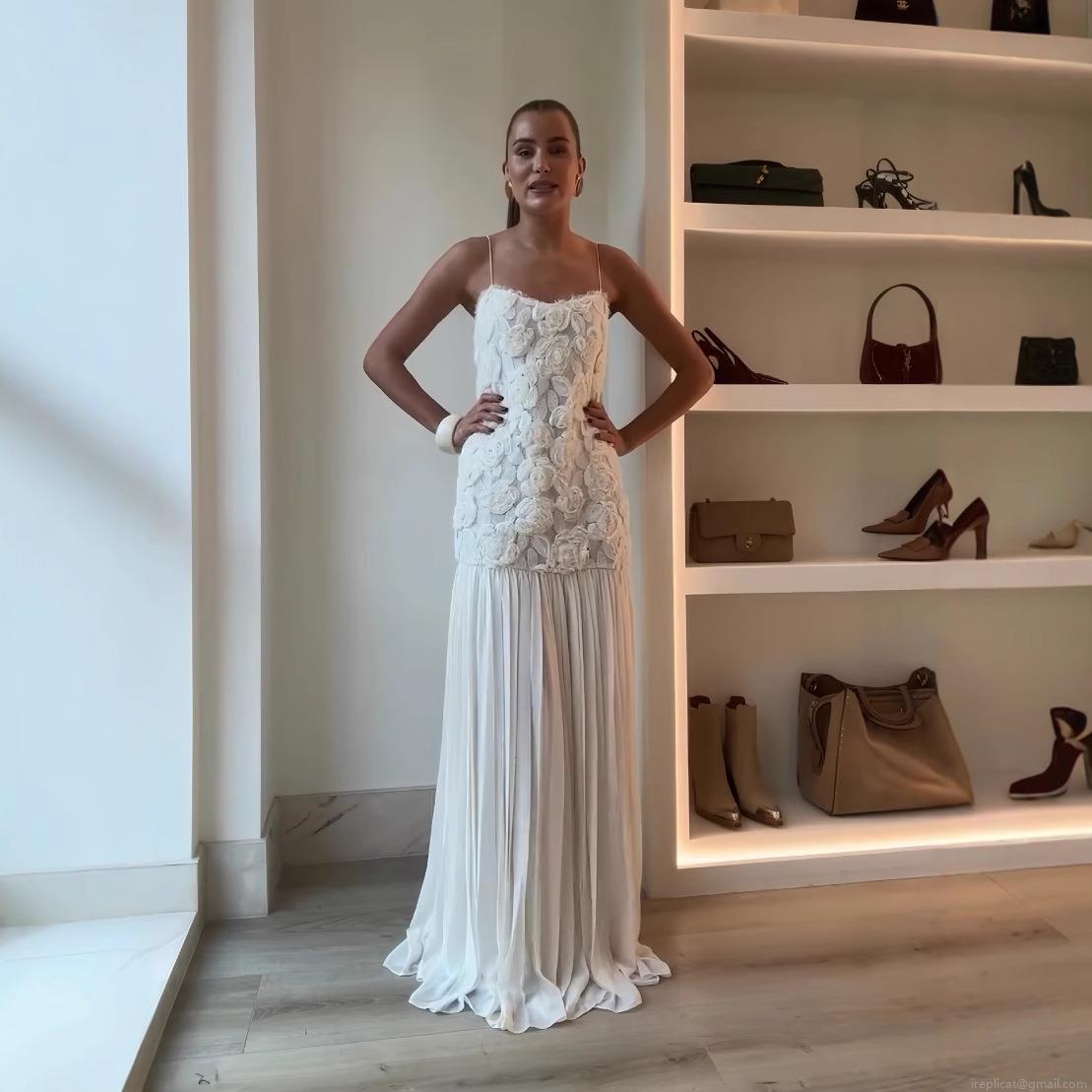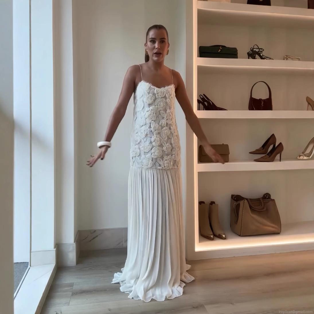 • Women Elegant 3D Rose Decoration Camisole Dress Lace Patchwork Pleated Maxi Gown For Party Evening Wedding Banquet Sleeveless Solid Color Spaghetti Strap Slim Fit High Waist Luxury Dress