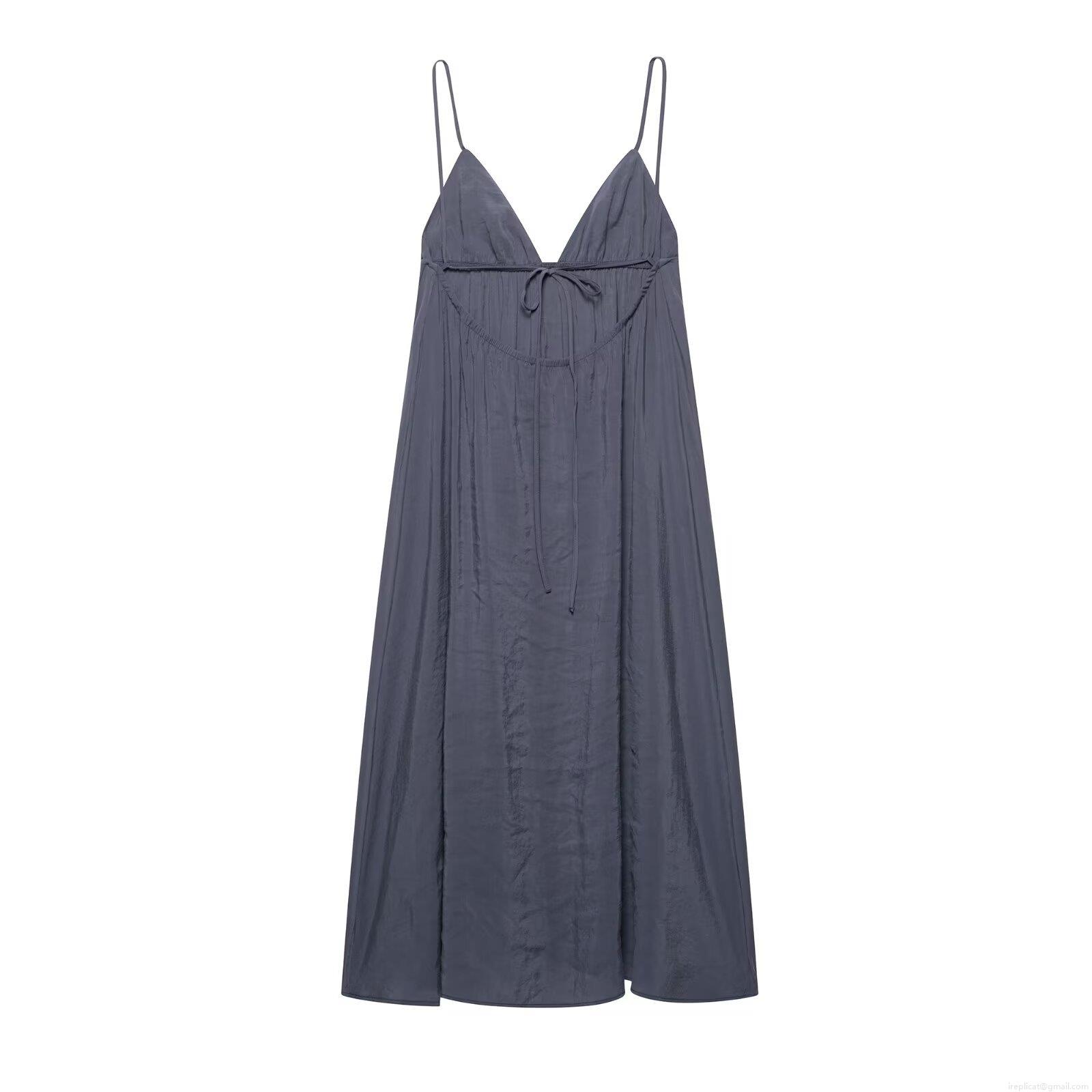 • Women Elegant Backless Spaghetti Strap Midi Dress Sexy V Neck Lace Up Ruched Satin Polyester A-Line Solid Color Summer Party Club Evening Vacation Dress