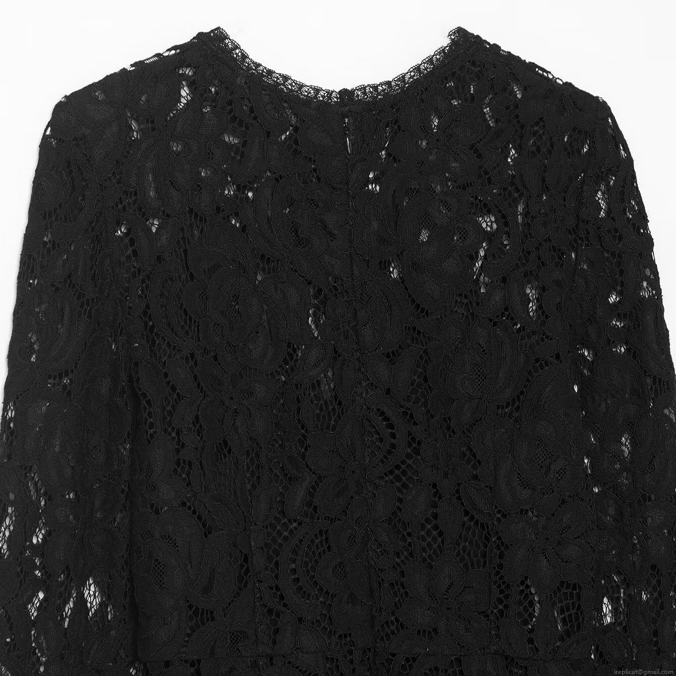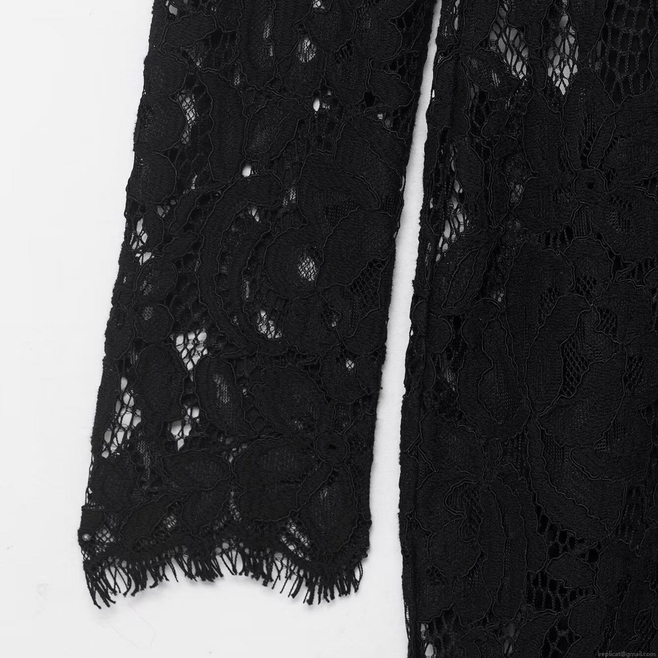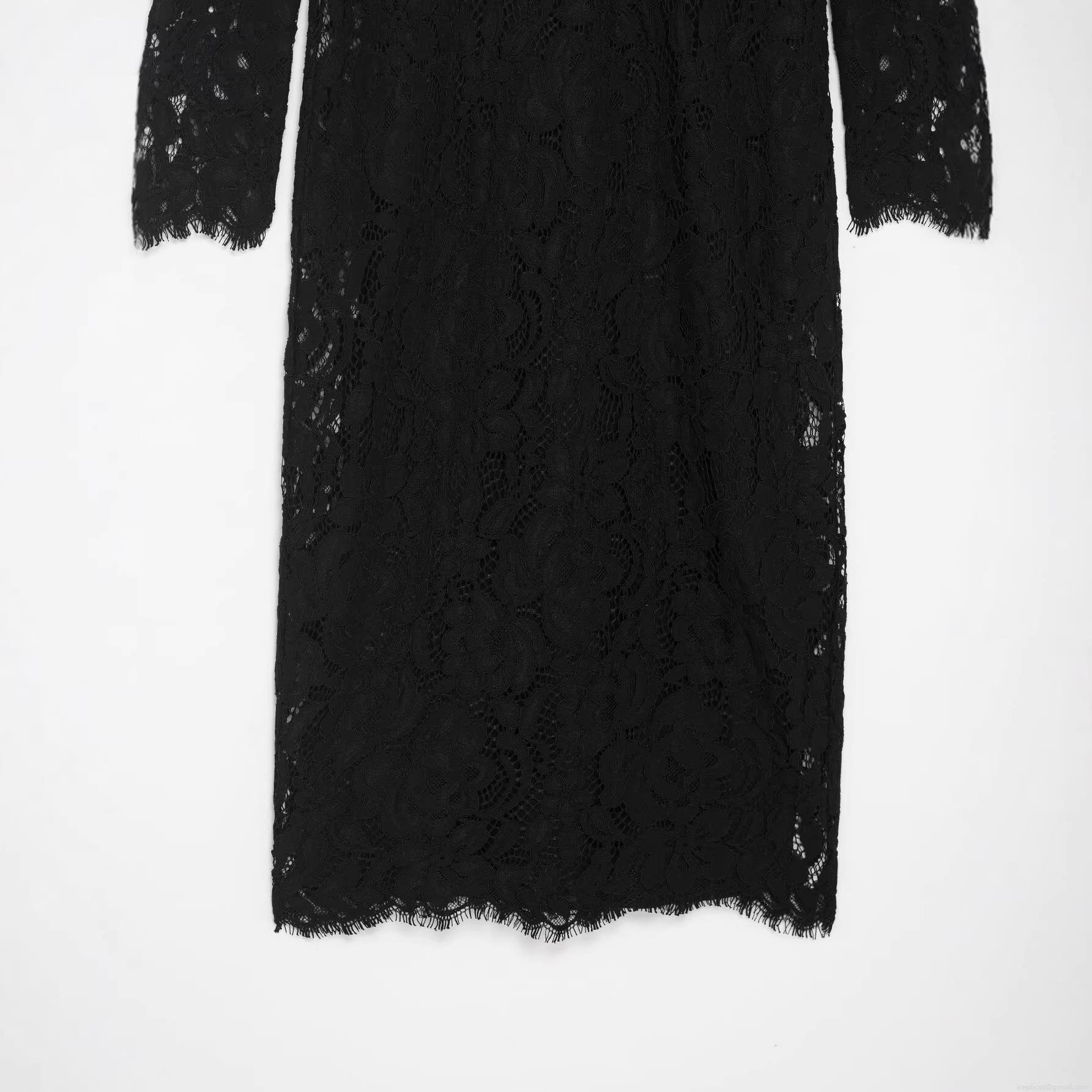 • Women Elegant Black Lace Long Sleeve Midi Dress Floral Hollow Out Slim Fit Bodycon Party Cocktail Evening Dress For Winter