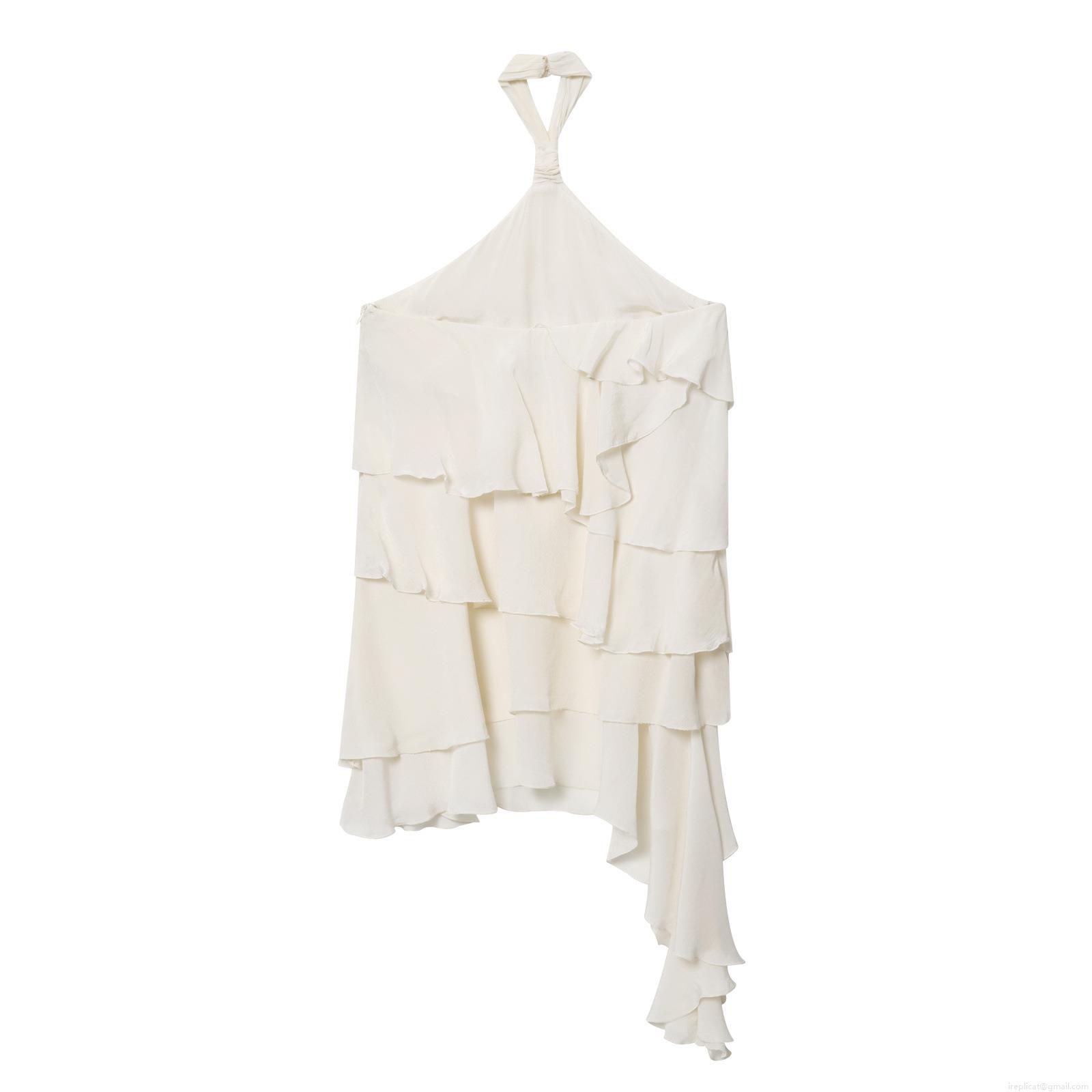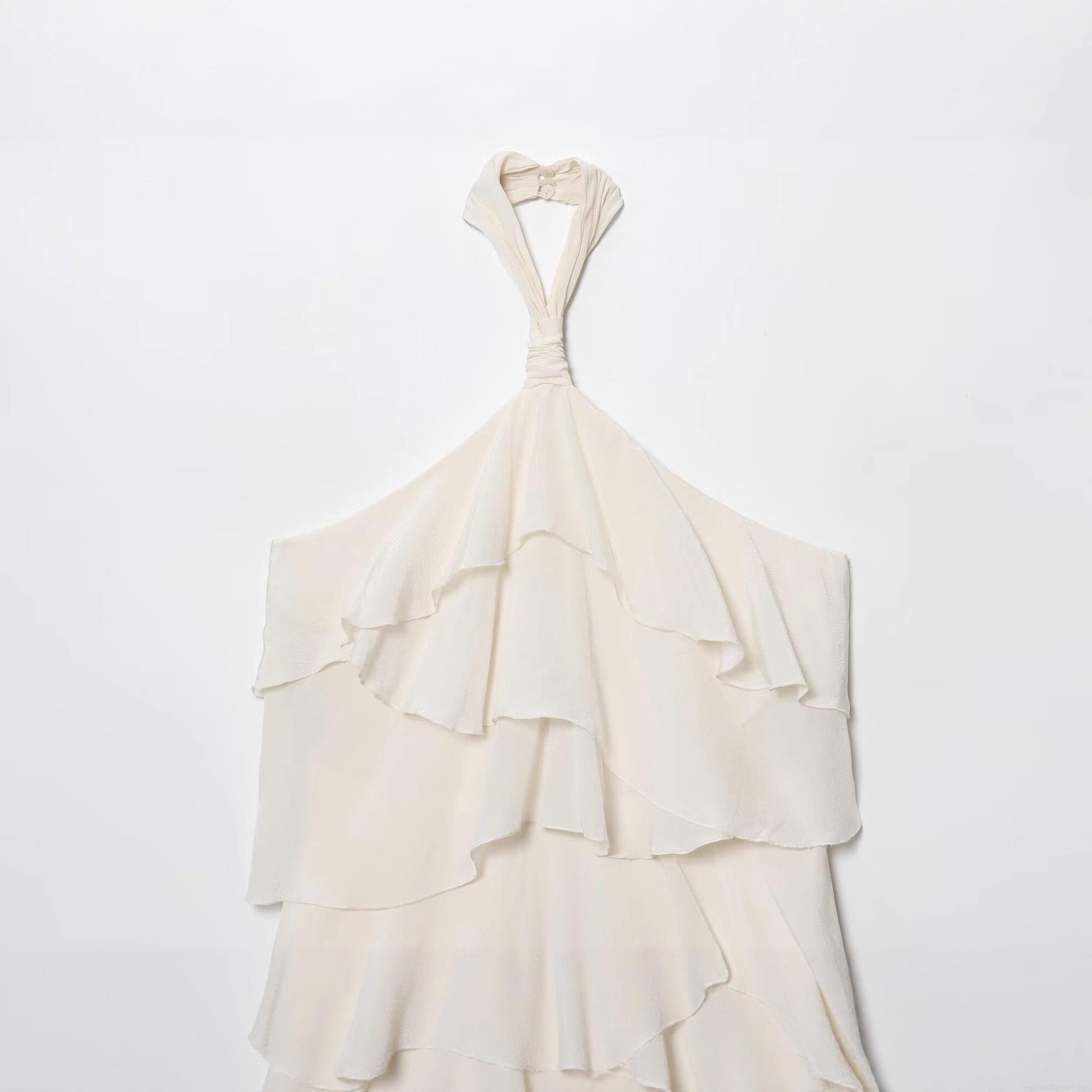 • Women Elegant European Style Halter Neck Layered Ruffle Midi Dress Backless Polyester Chiffon Solid White Dress For Party Vacation Streetwear