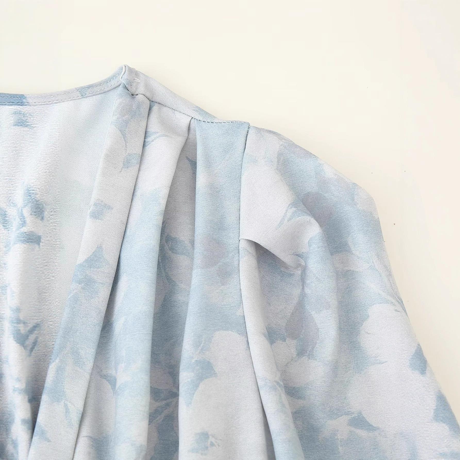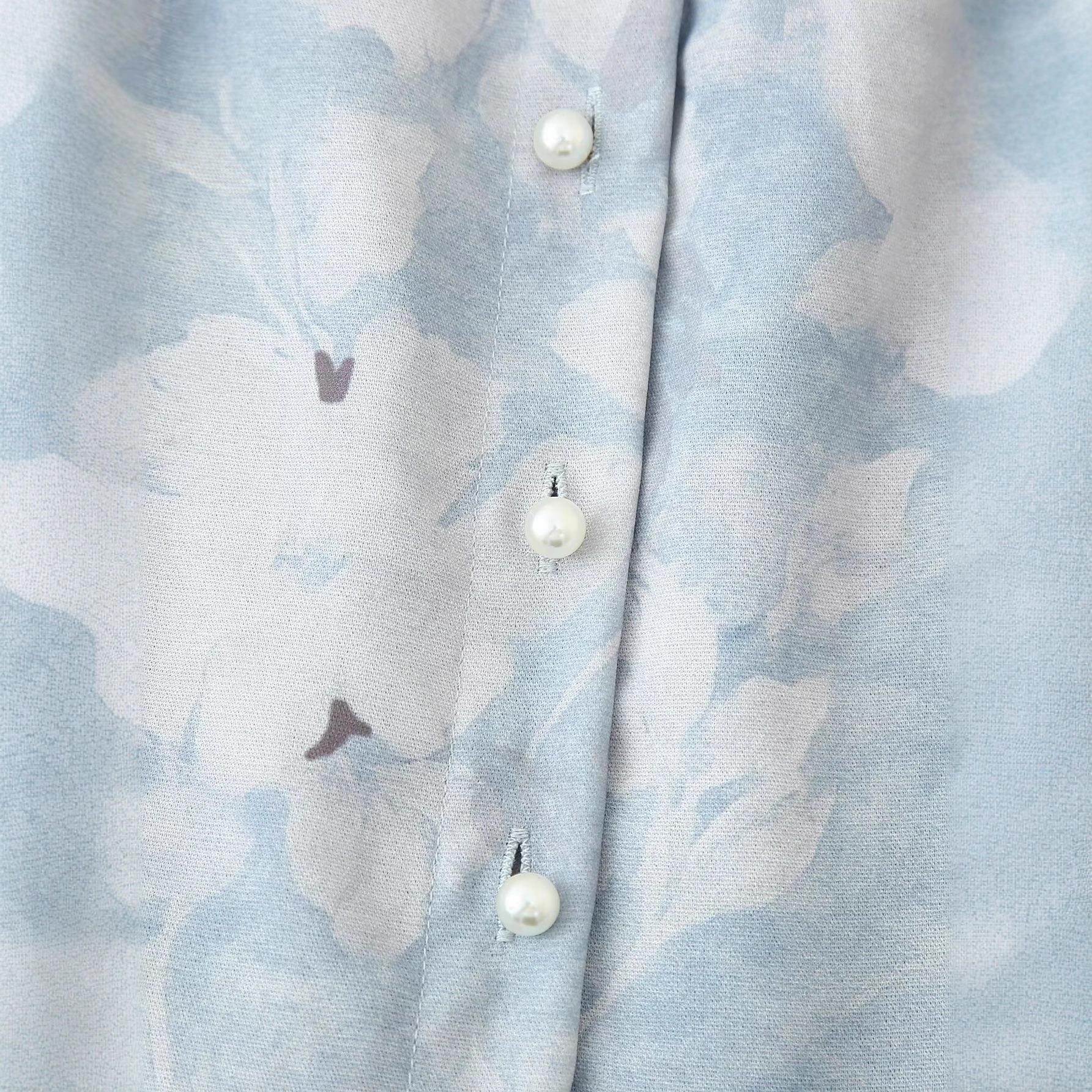 Floral Pattern, Flowers, Waist shaping, V-neck, Button, Puff Sleeves