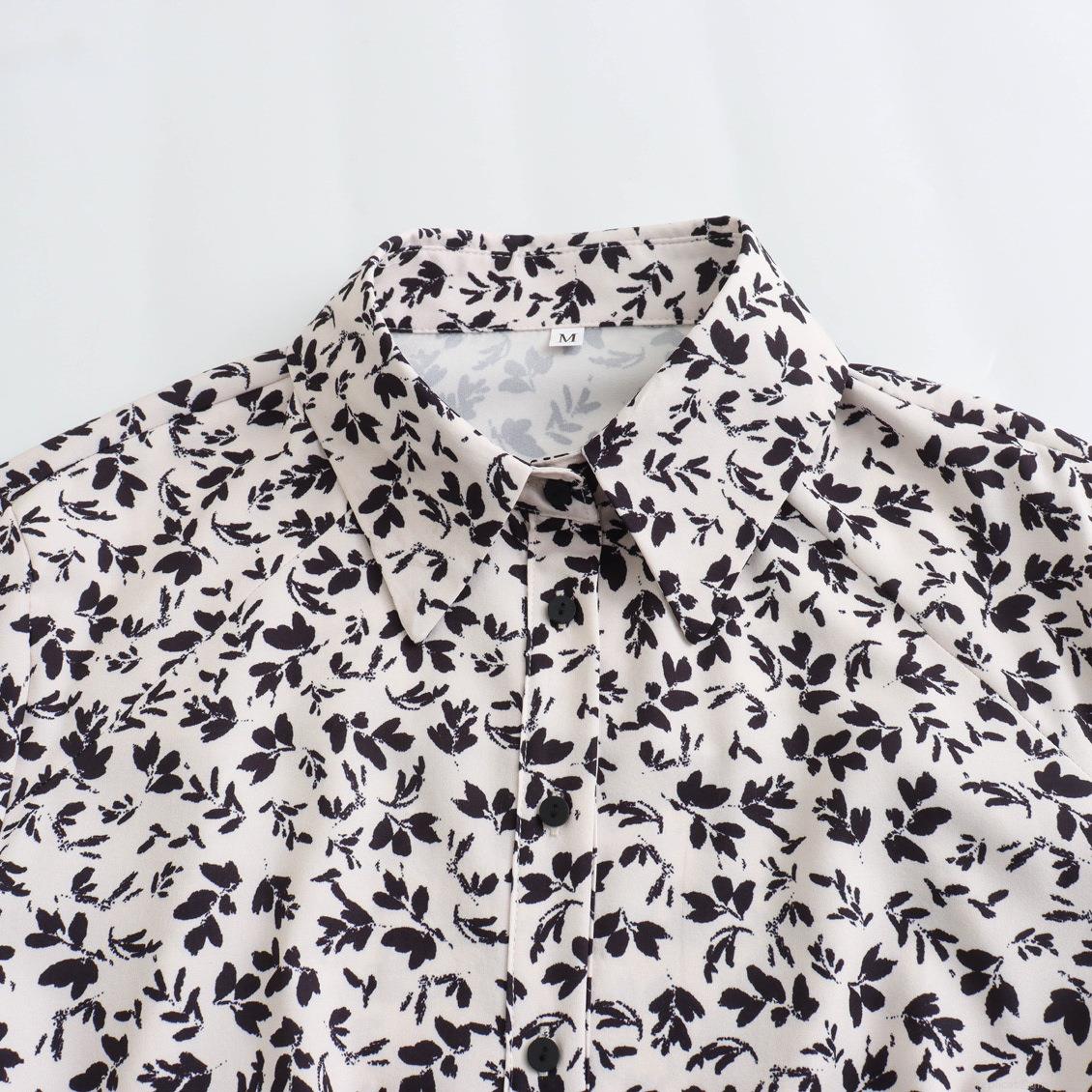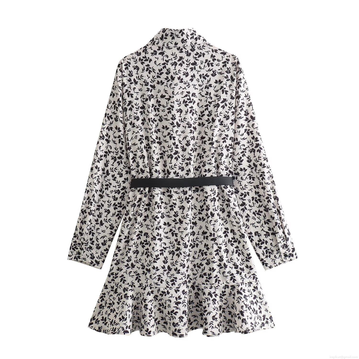 • Women Elegant Floral Print Shirt Dress With Belt Long Sleeve Button Down A-Line Midi Dress Polyester Spandex Fashion Office Wear