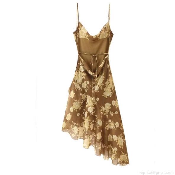 • Women Elegant Floral Print Spaghetti Strap Midi Dress Ruffle Asymmetric Hem V Neck Backless Chiffon Dresses For Party Vacation Summer Wear