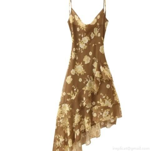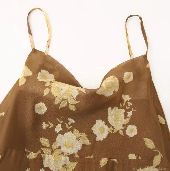 Floral Pattern, Ruffles, Rose, Printing, Suspenders, Irregular Hem, Dangling