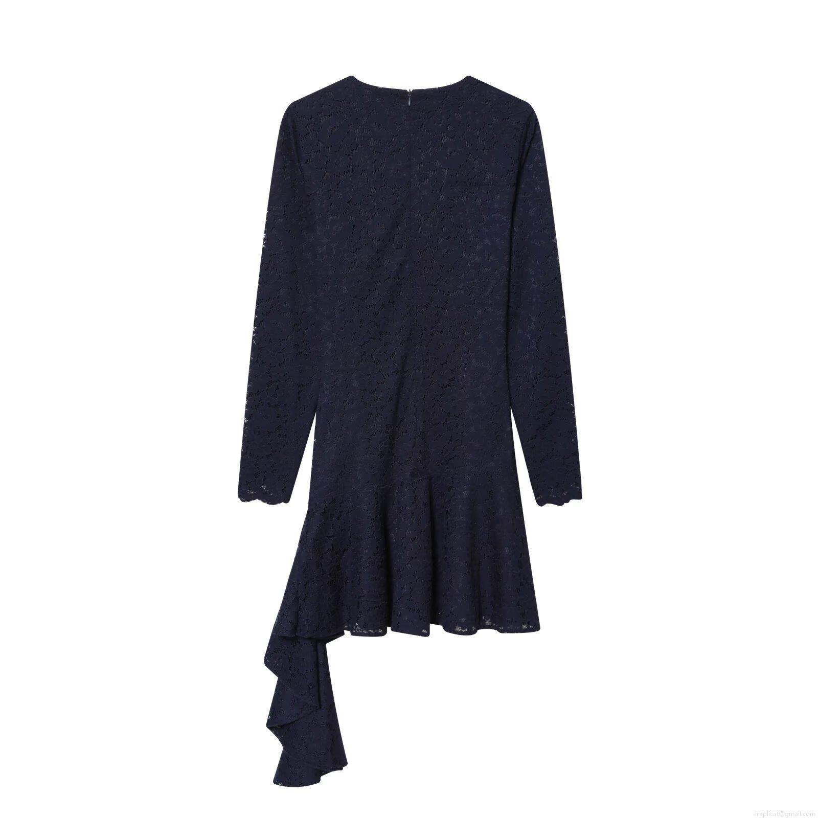 Women Elegant Lace Layered Midi Dress Long Sleeve Irregular Ruffle Hem Bodycon Dresses For Evening Party Wedding Guest Lady Fashion Dress