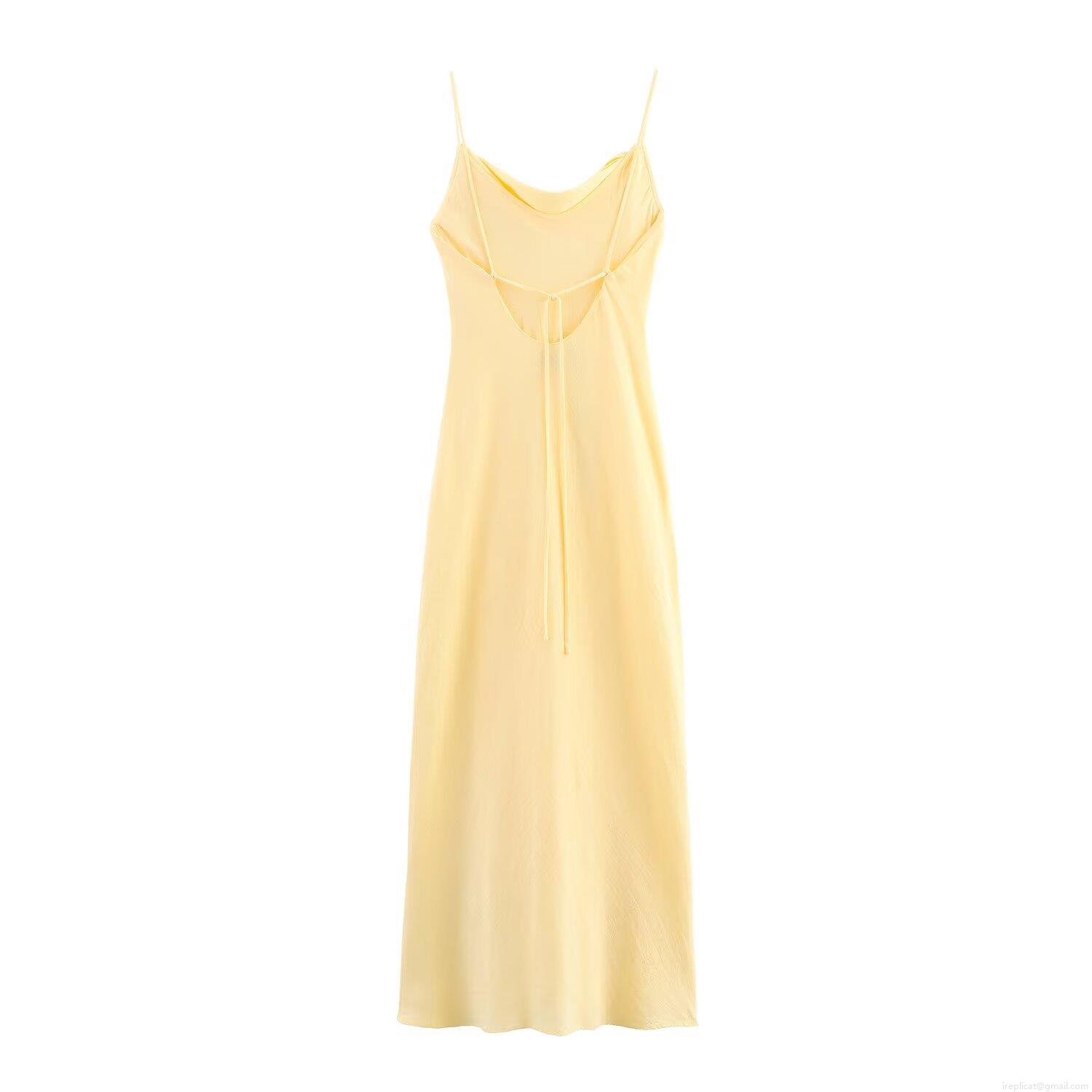 • Women Elegant Midi Slip Dress Cowl Neck Backless Lace Up Polyester Ramie Blend Solid Color Evening Party Summer Vacation Socialite Style Dress