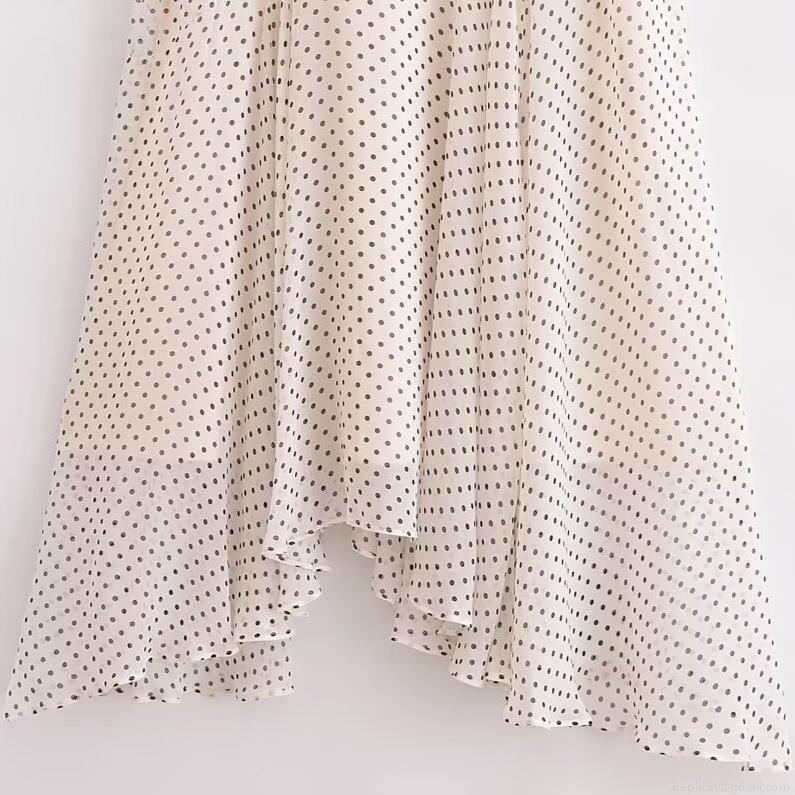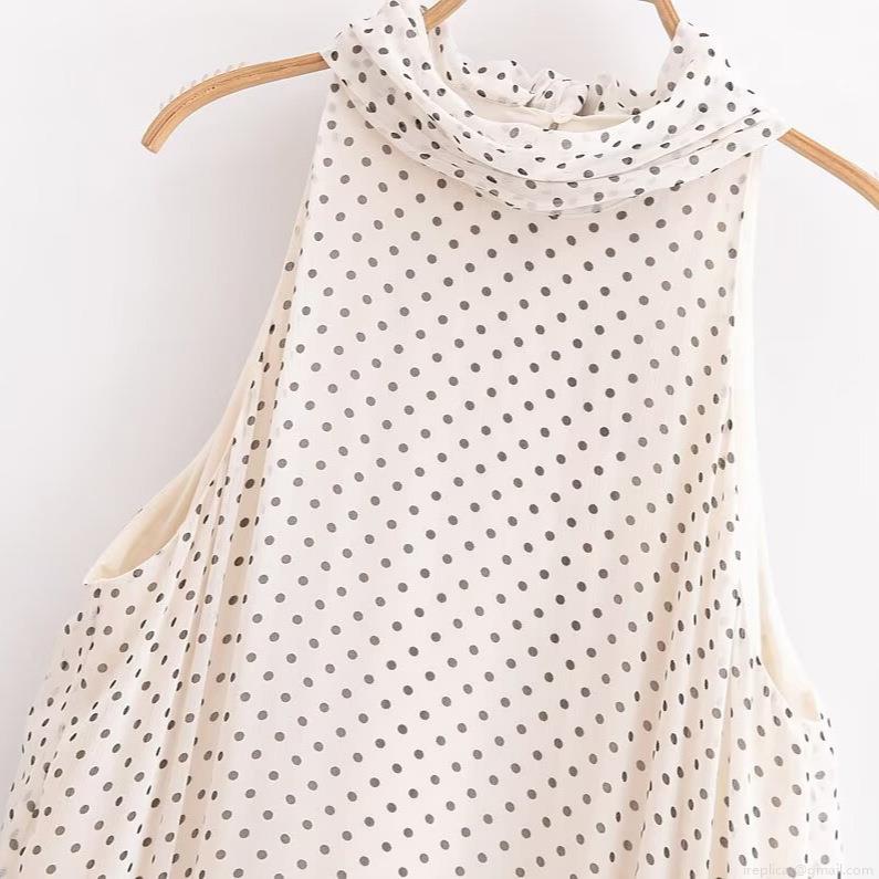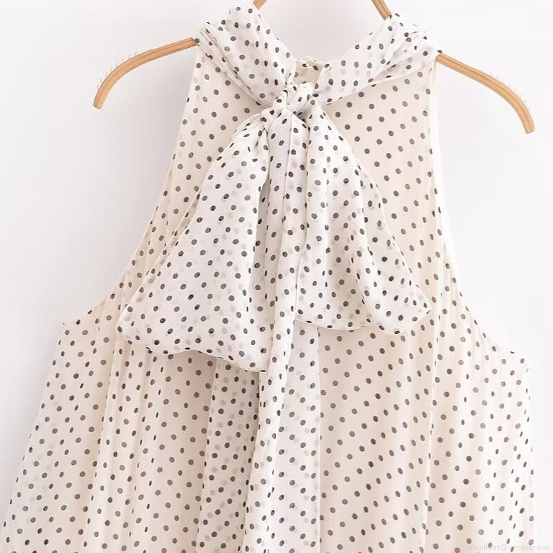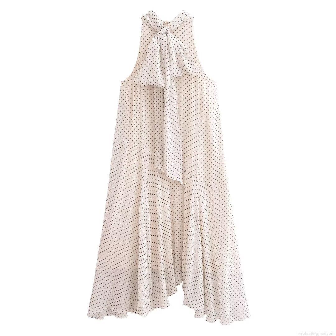 • Women Elegant Polka Dot Halter Dress Sleeveless Asymmetrical Hem Bow Tie Chiffon Midi Dress For Vacation Summer Party