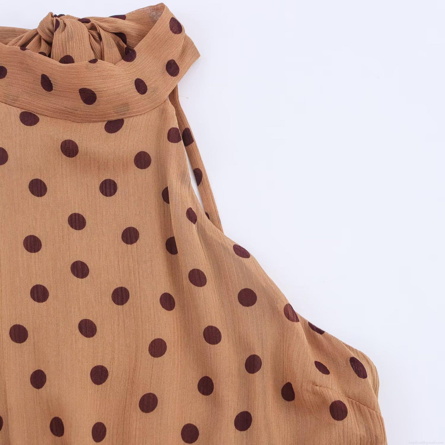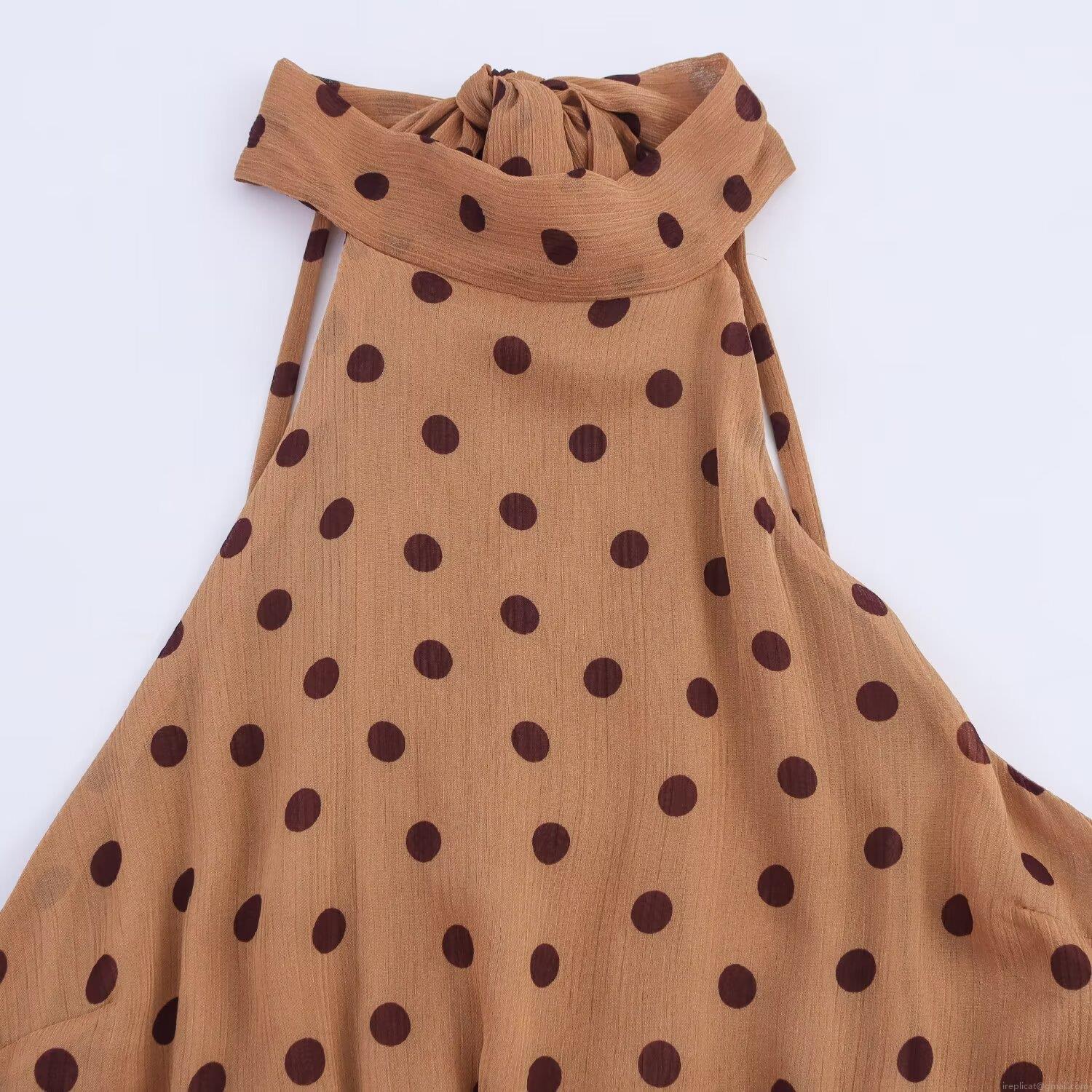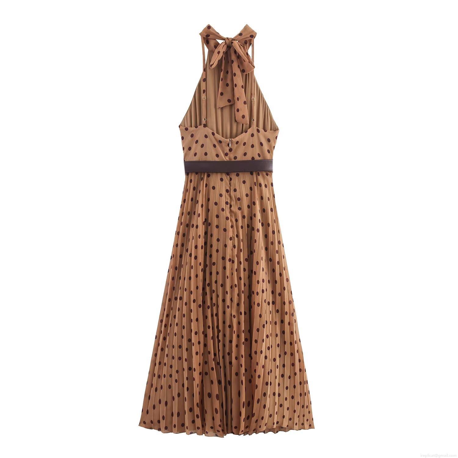 Women Elegant Polka Dot Halter Midi Dress With Belt Chiffon Pleated Sleeveless A-Line Party Dress Retro Style Ladies Summer Dresses