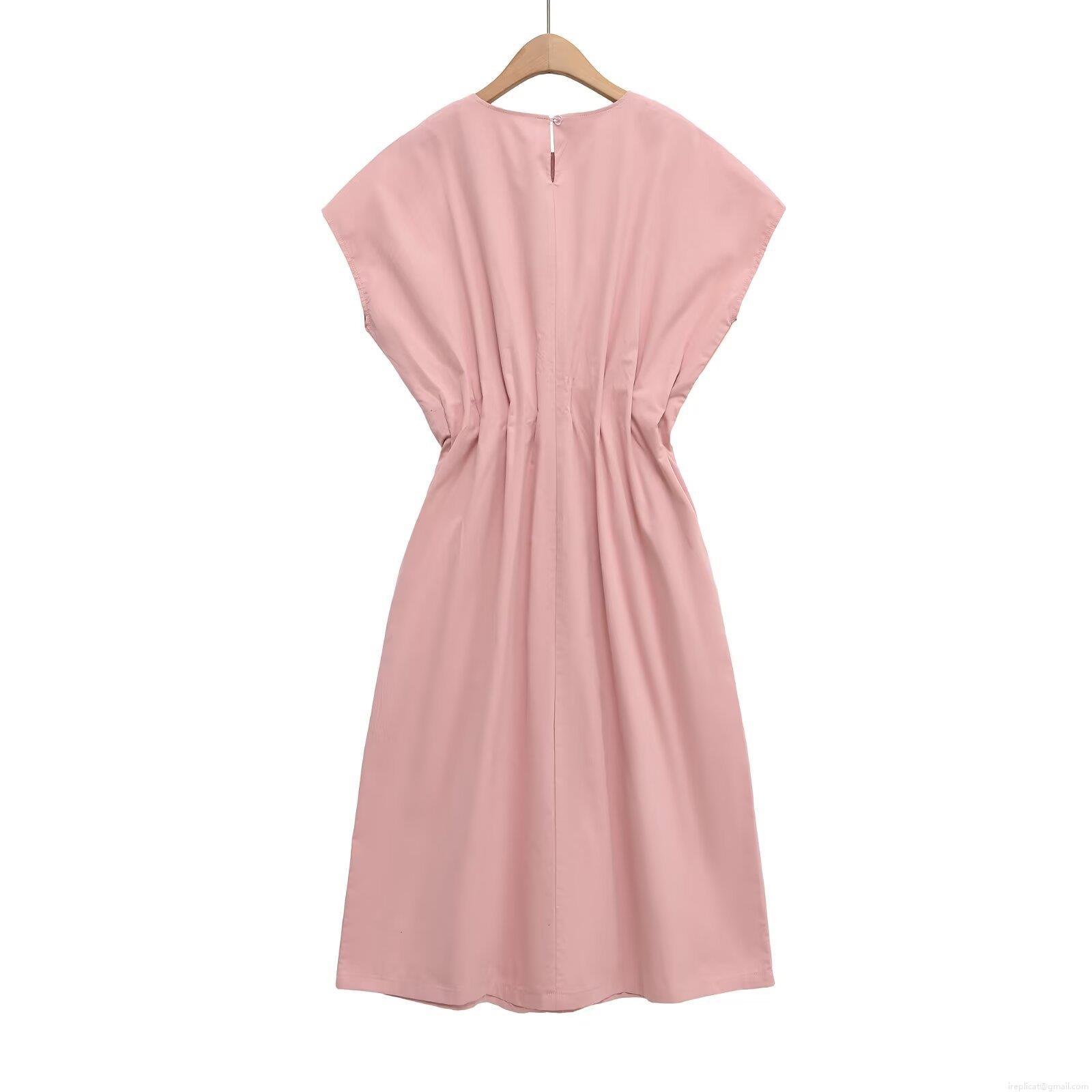 • Women Elegant Round Neck Pleated Gathered Waist Midi Dress Summer Casual Solid Color Short Sleeve A-Line Pullover Dress For Ladies Work Daily Dating