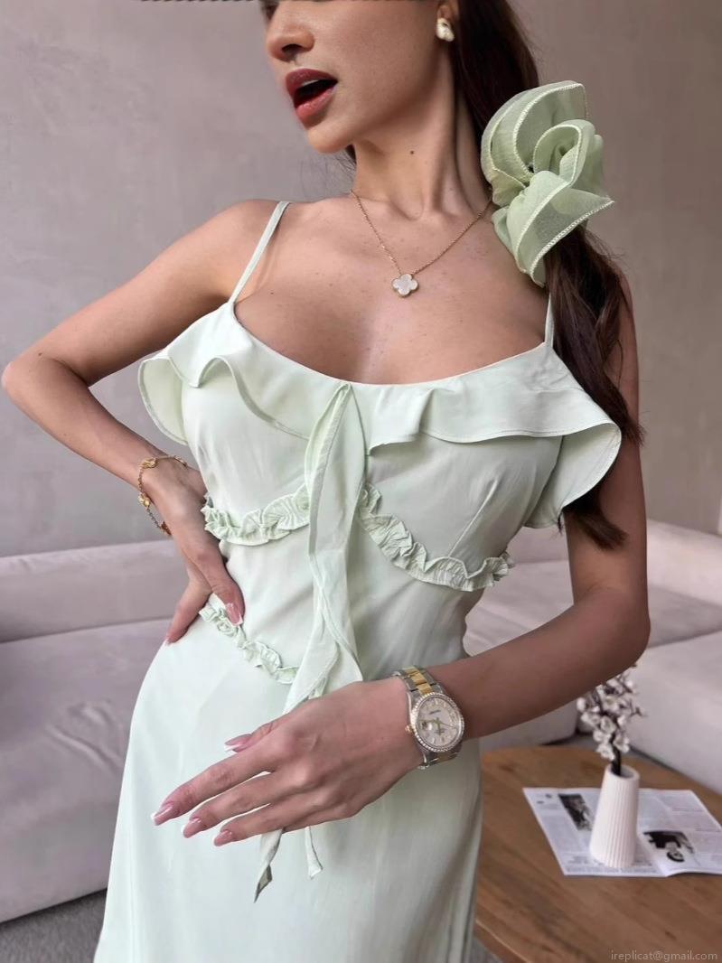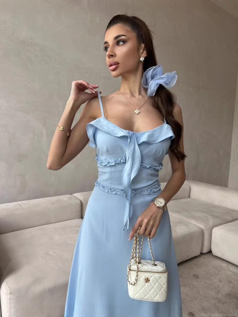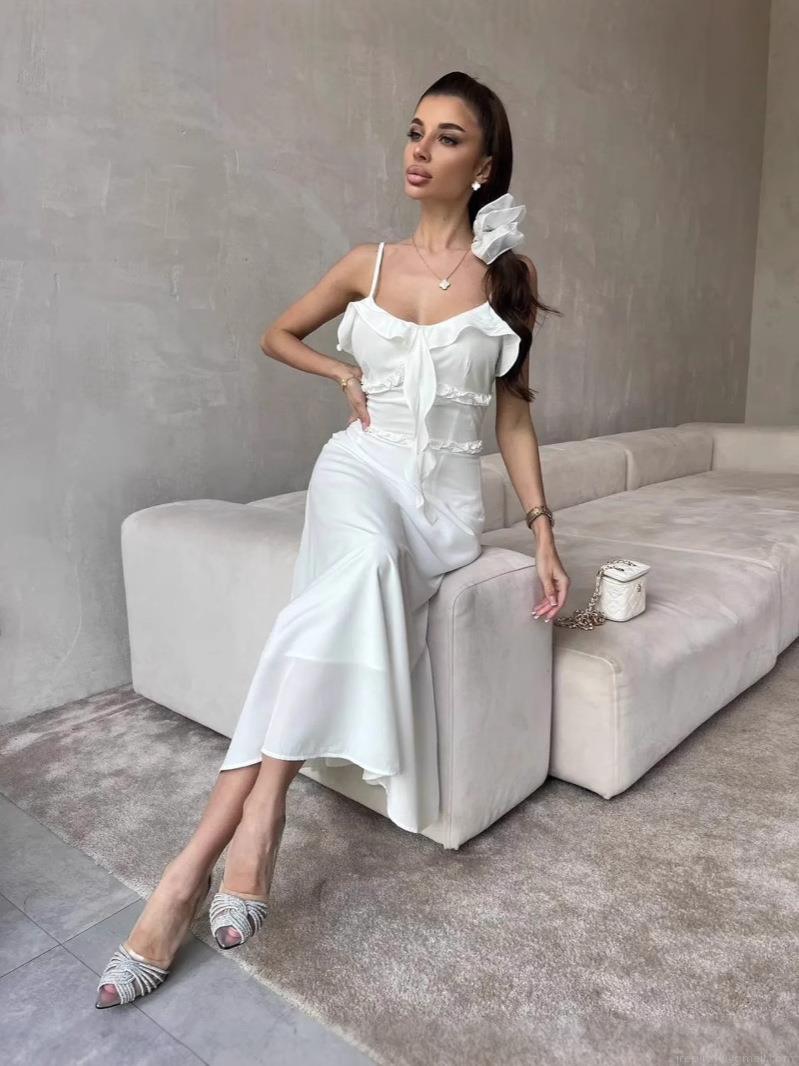 • Women Elegant Ruffle Hem Cami Midi Dress Sexy Cotton Polyester Blend Summer Backless Sleeveless Solid Color Bow Tie Party Dress For Women