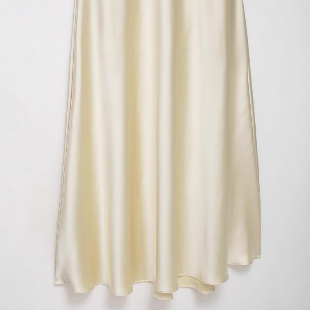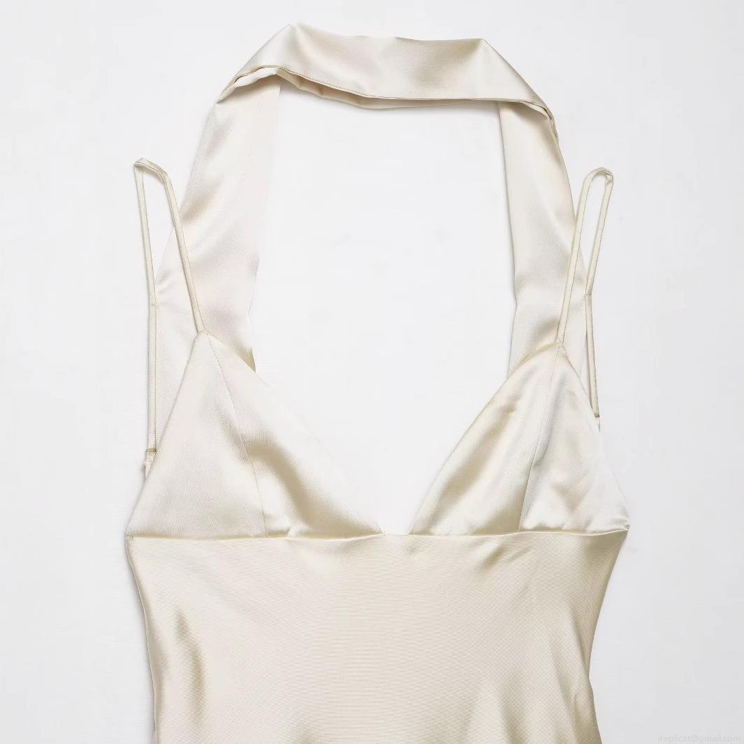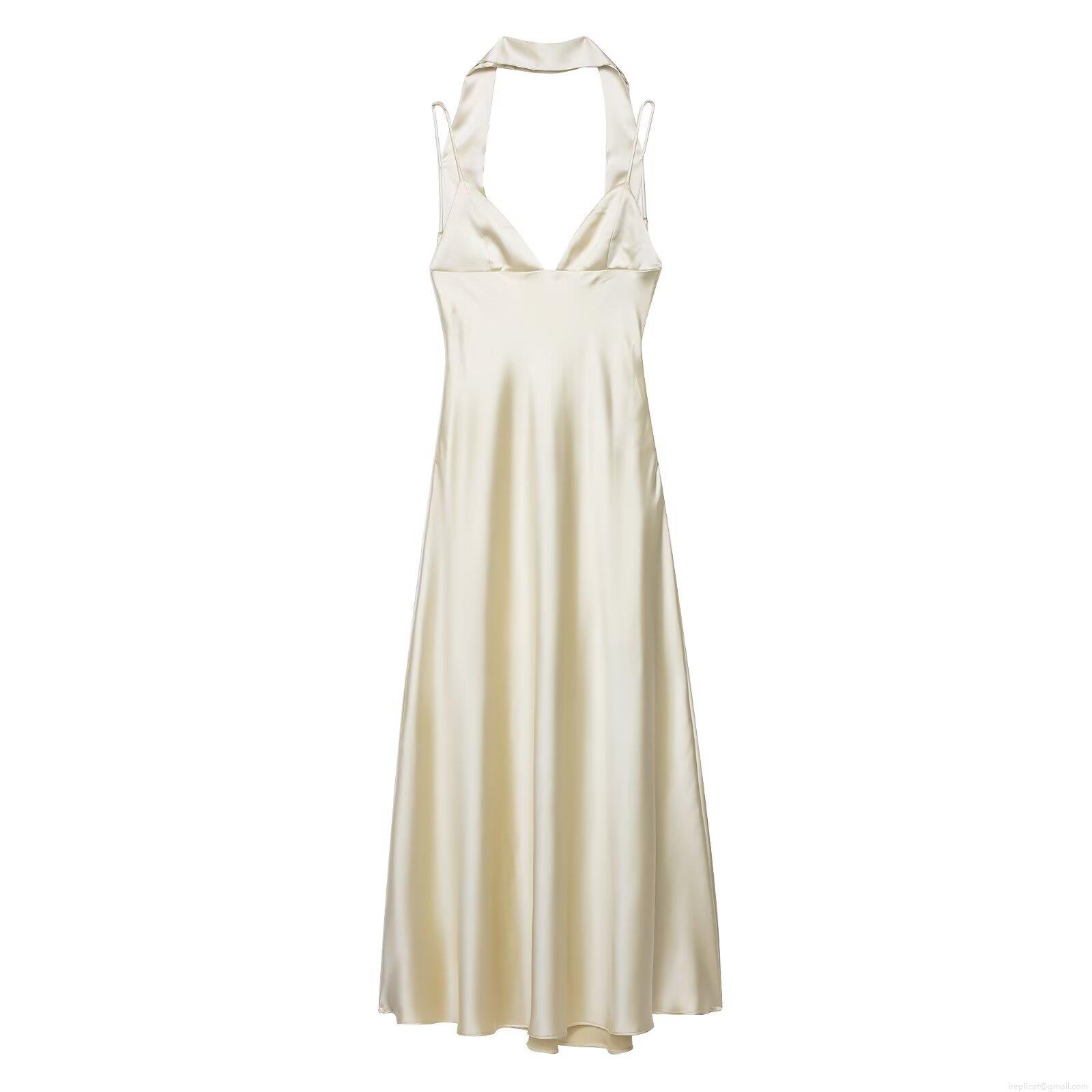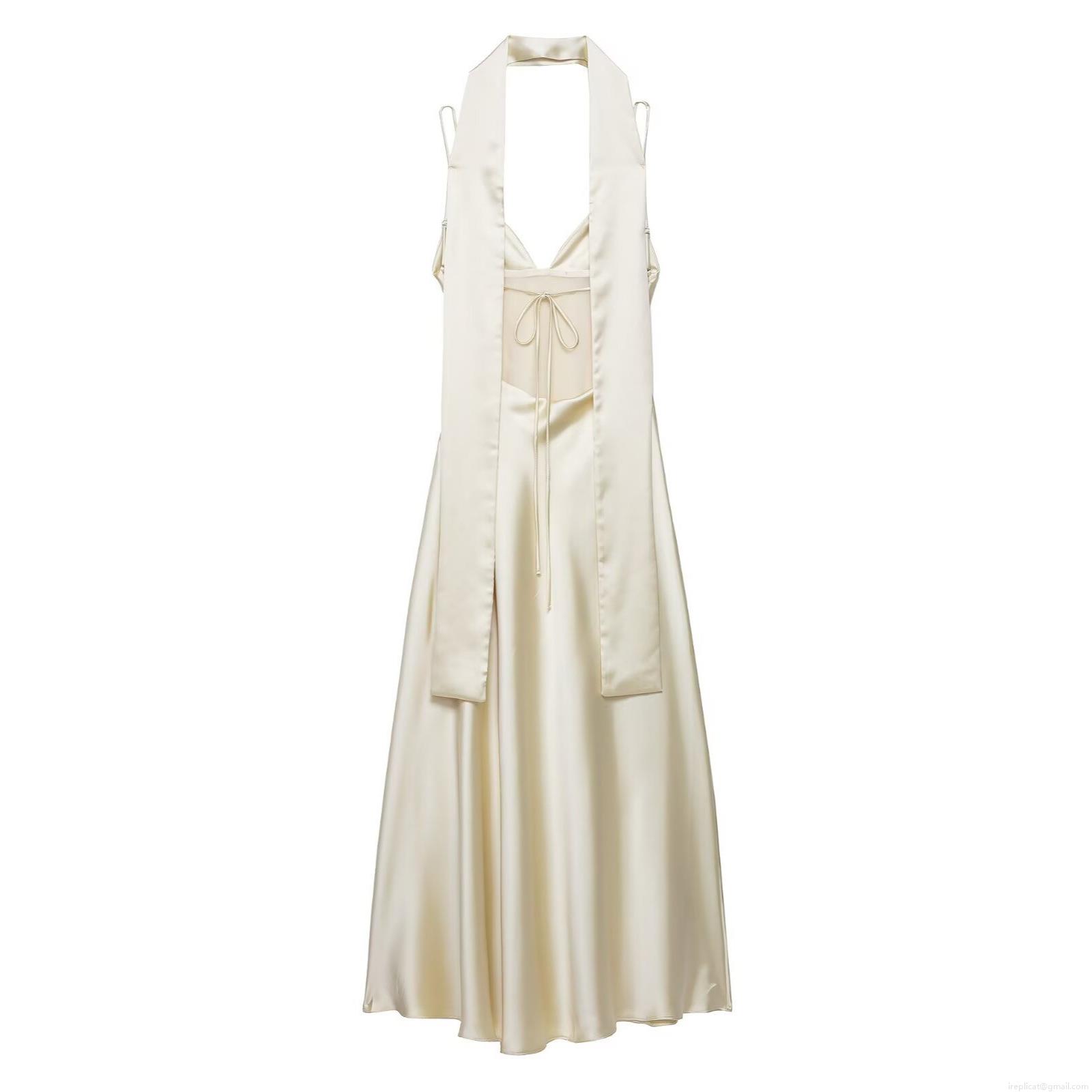 • Women Elegant Satin Halter Backless Midi Dress Sexy Scarf Neck Tie-up Party Evening Clubwear Solid Champagne Sleeveless Bodycon Dresses