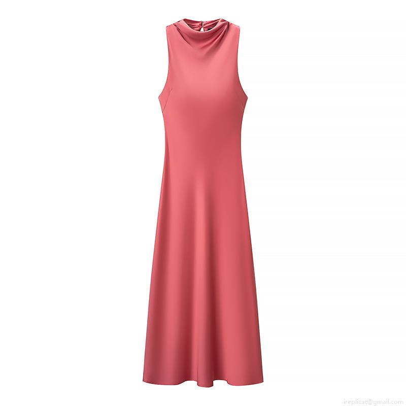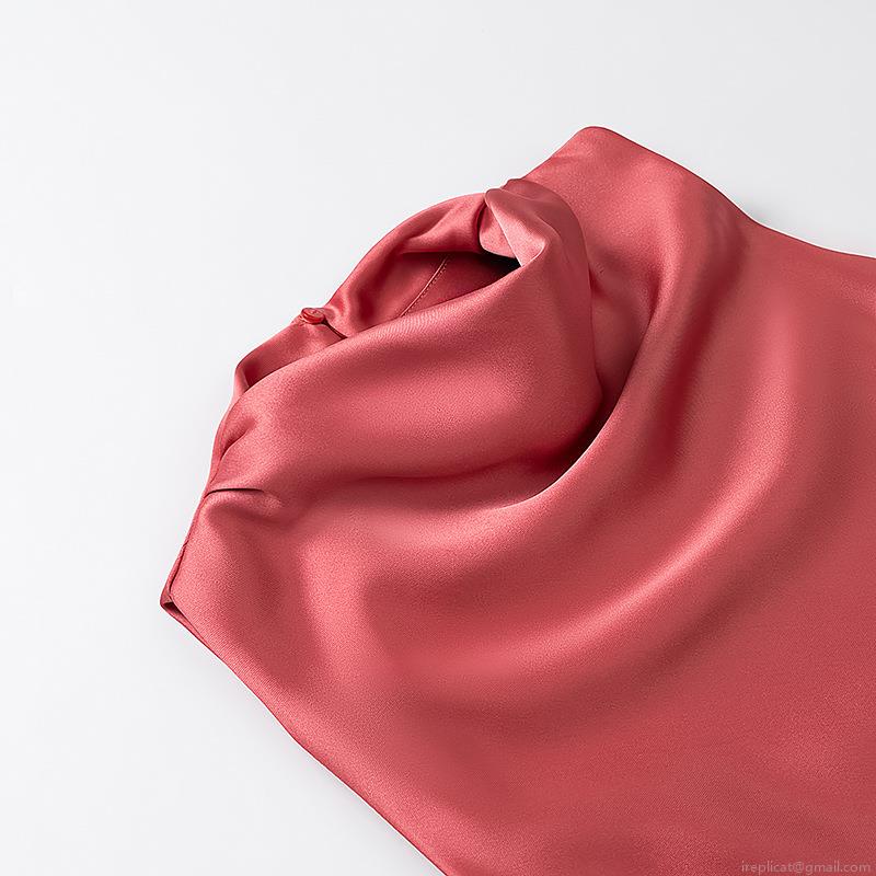 • Women Elegant Satin Sleeveless Midi Dress Polyester Solid Color Halter Neck A-Line Silhouette Summer Party Casual Evening Chic Dress For Women