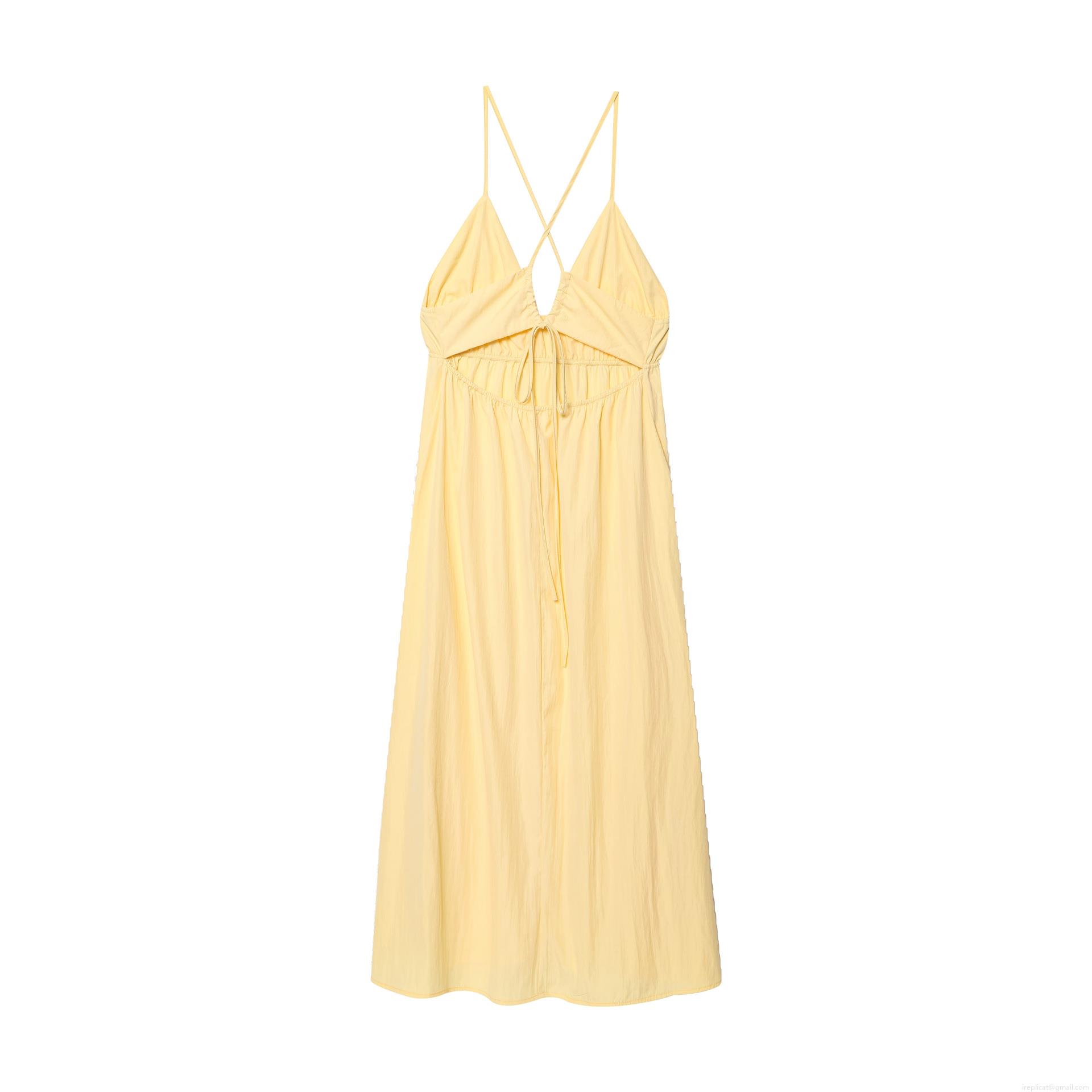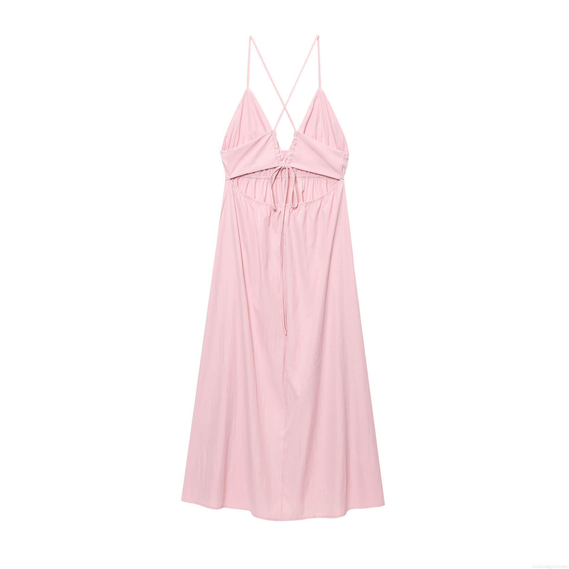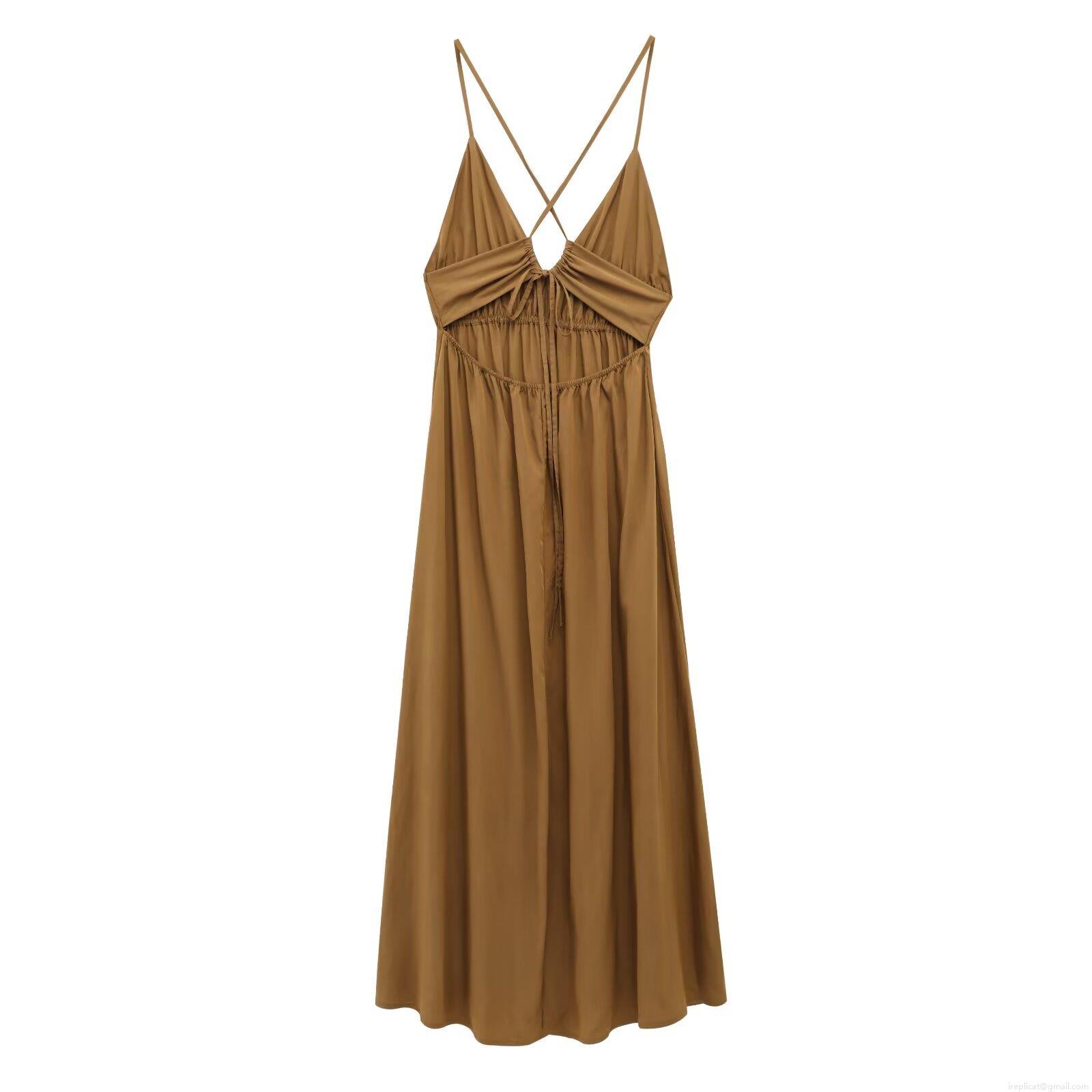 • Women Elegant Sleeveless V-Neck Spaghetti Strap Midi Dress Backless Cross Tied Draped Solid Color Sexy Cocktail Vacation Party Dress