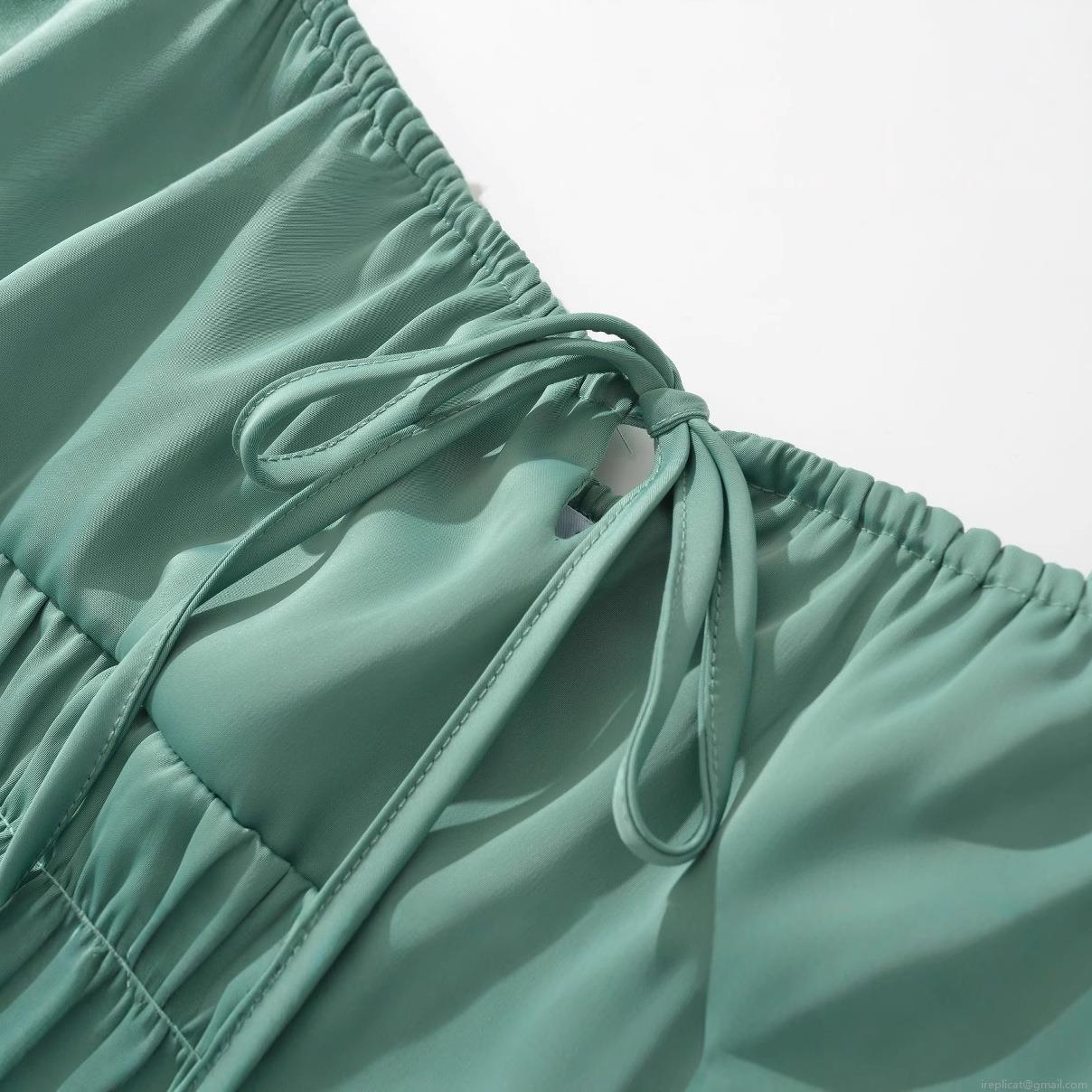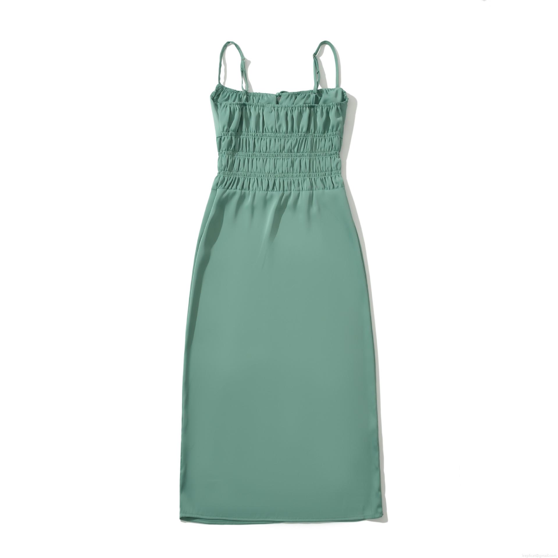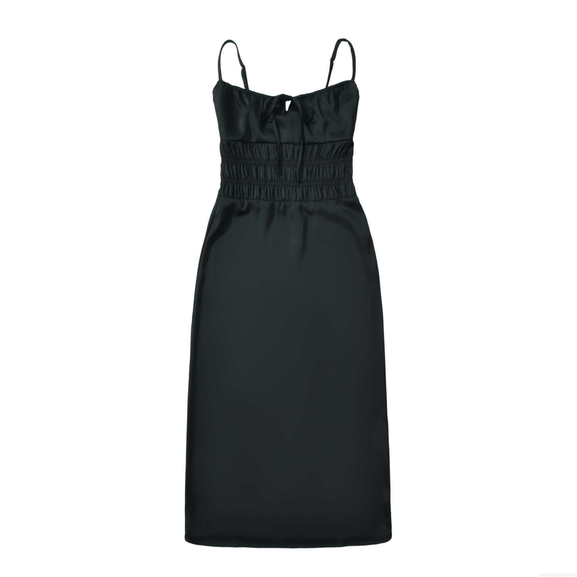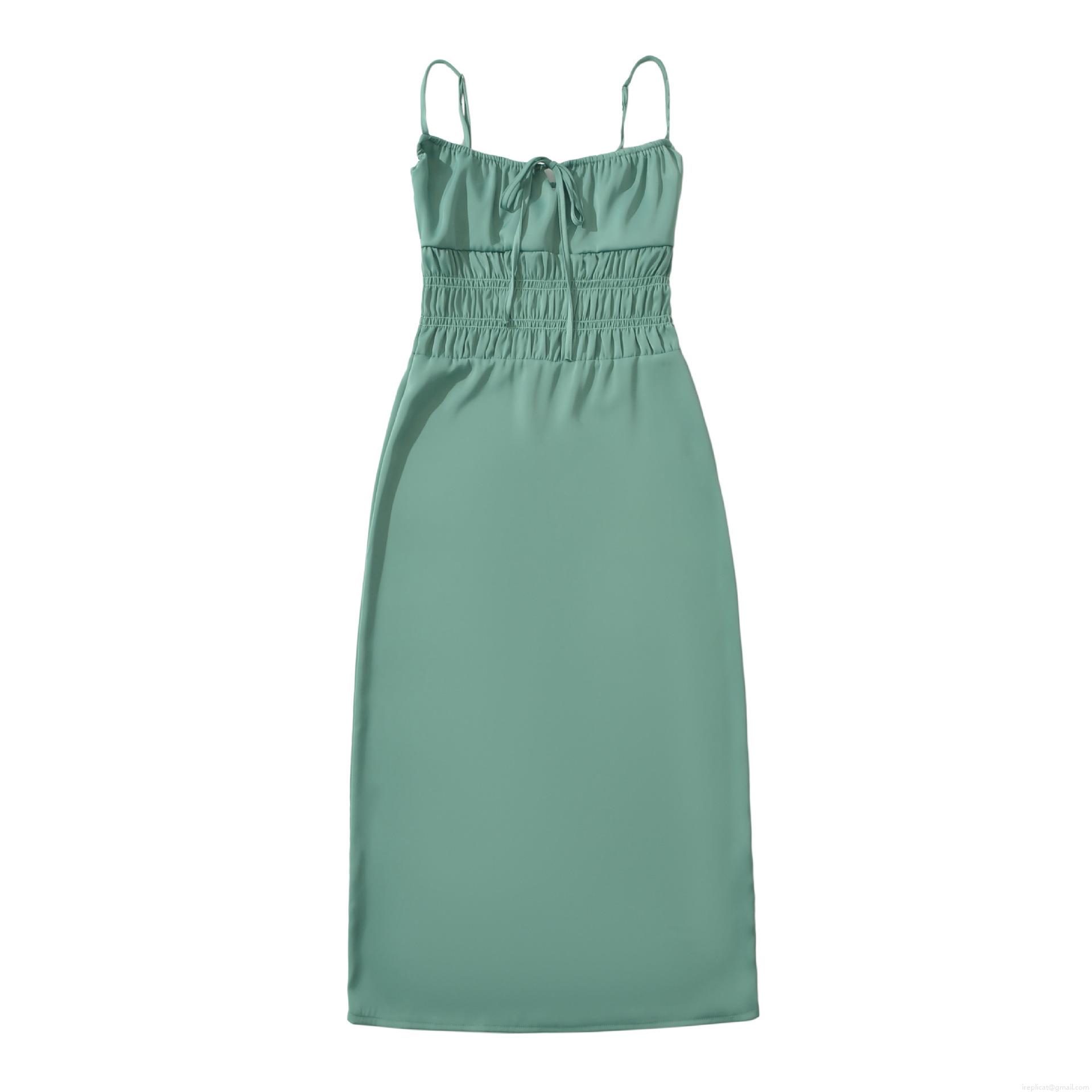 • Women Elegant Spaghetti Strap Midi Dress Sexy Smocked Waist Bow Tie Front Solid Color Chic Sleeveless A-Line Party Dress For Lady Summer Fashion