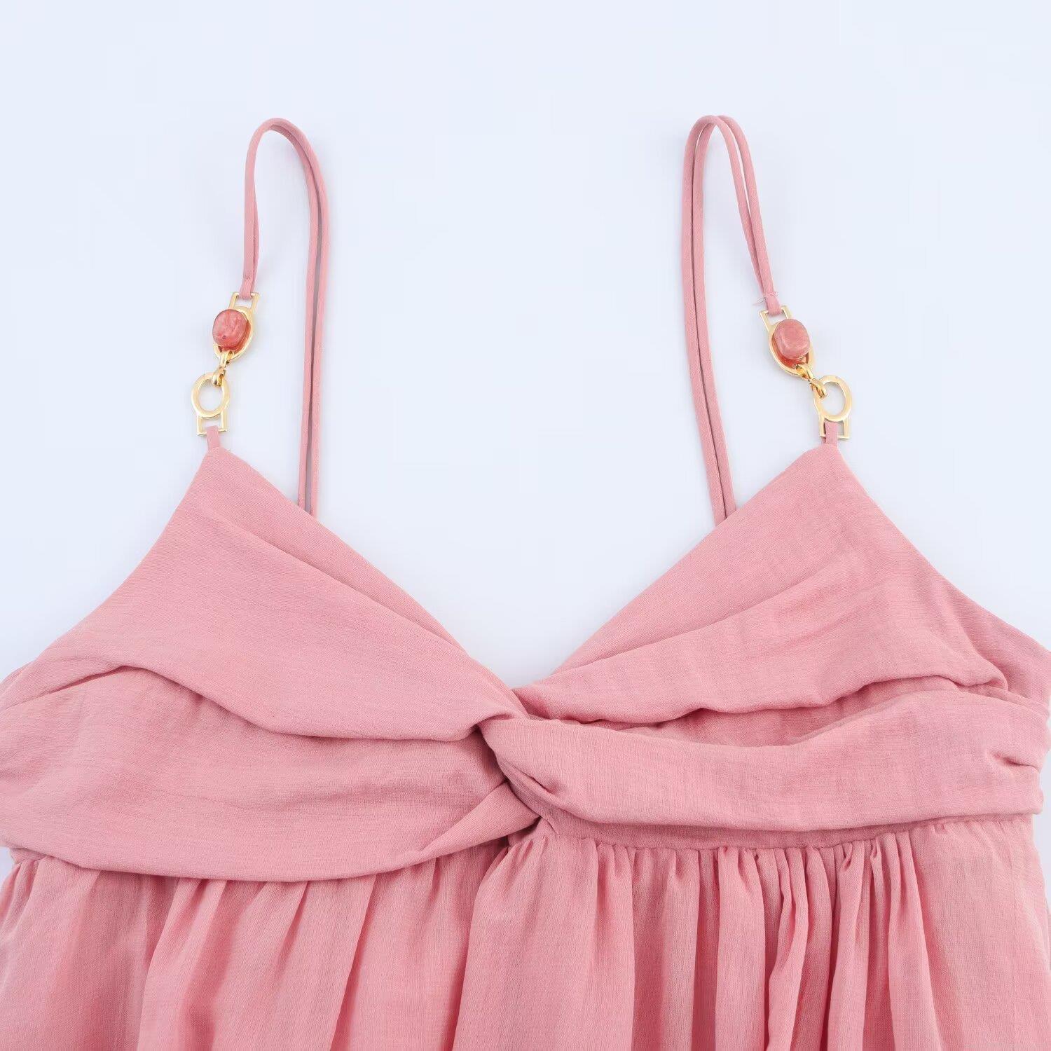 Solid Color, Pleats, Knot, Metal Ring, Thin Shoulder Straps