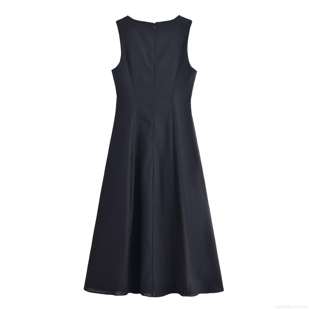 • Women Elegant Square Neck Sleeveless Midi Dress Polyester Linen Blend Waist Cinched Front Button Side Slit A-Line Party Dress For Ladies Fashion Summer Autumn Clothing