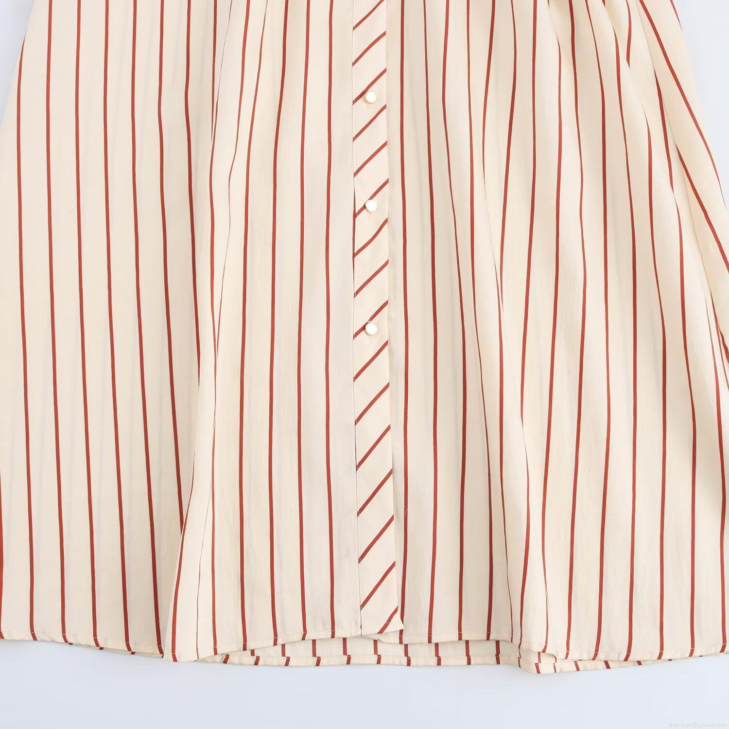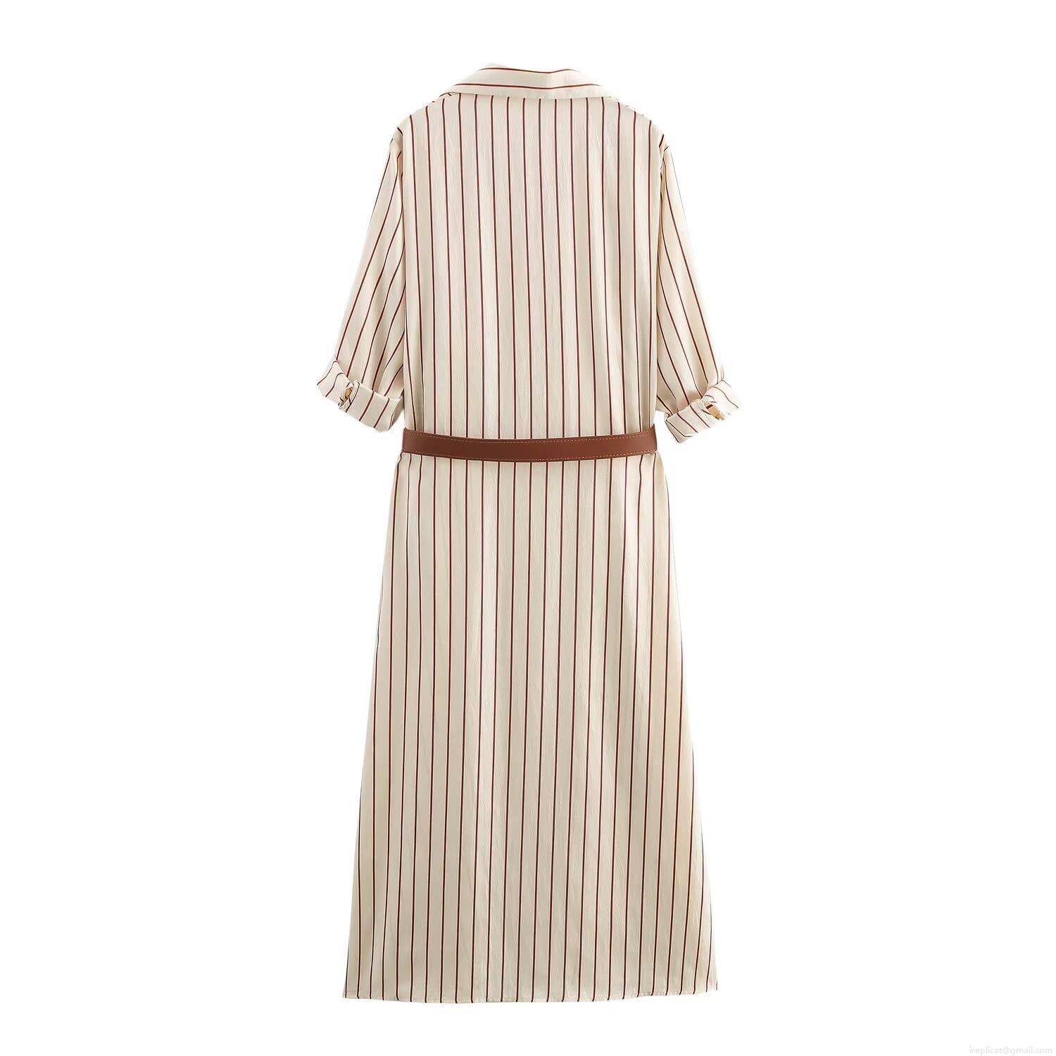 • Women Elegant Striped Midi Shirt Dress With Belt Long Sleeve Button Down Lapel Satin Texture Office Casual Dress For Lady Spring Autumn Fashion