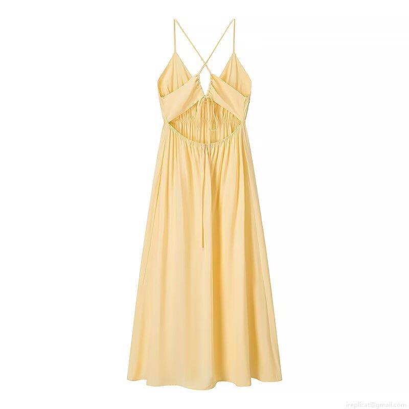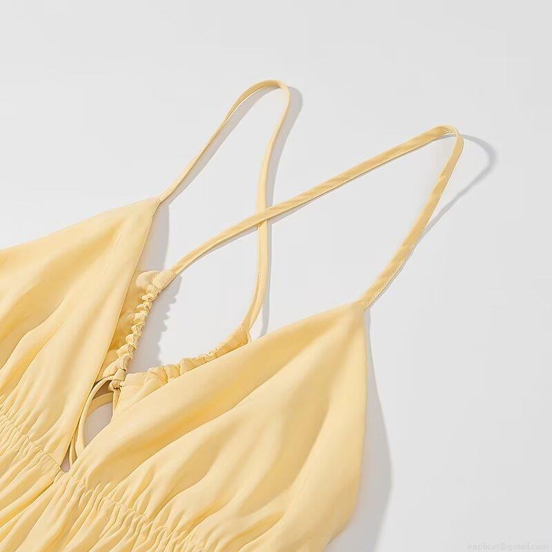 • Women Elegant V Neck Cami Midi Dress Sexy Backless Cross Strap Pleated High Waist Solid Color Polyester Dress For Evening Party Clubwear Vacation