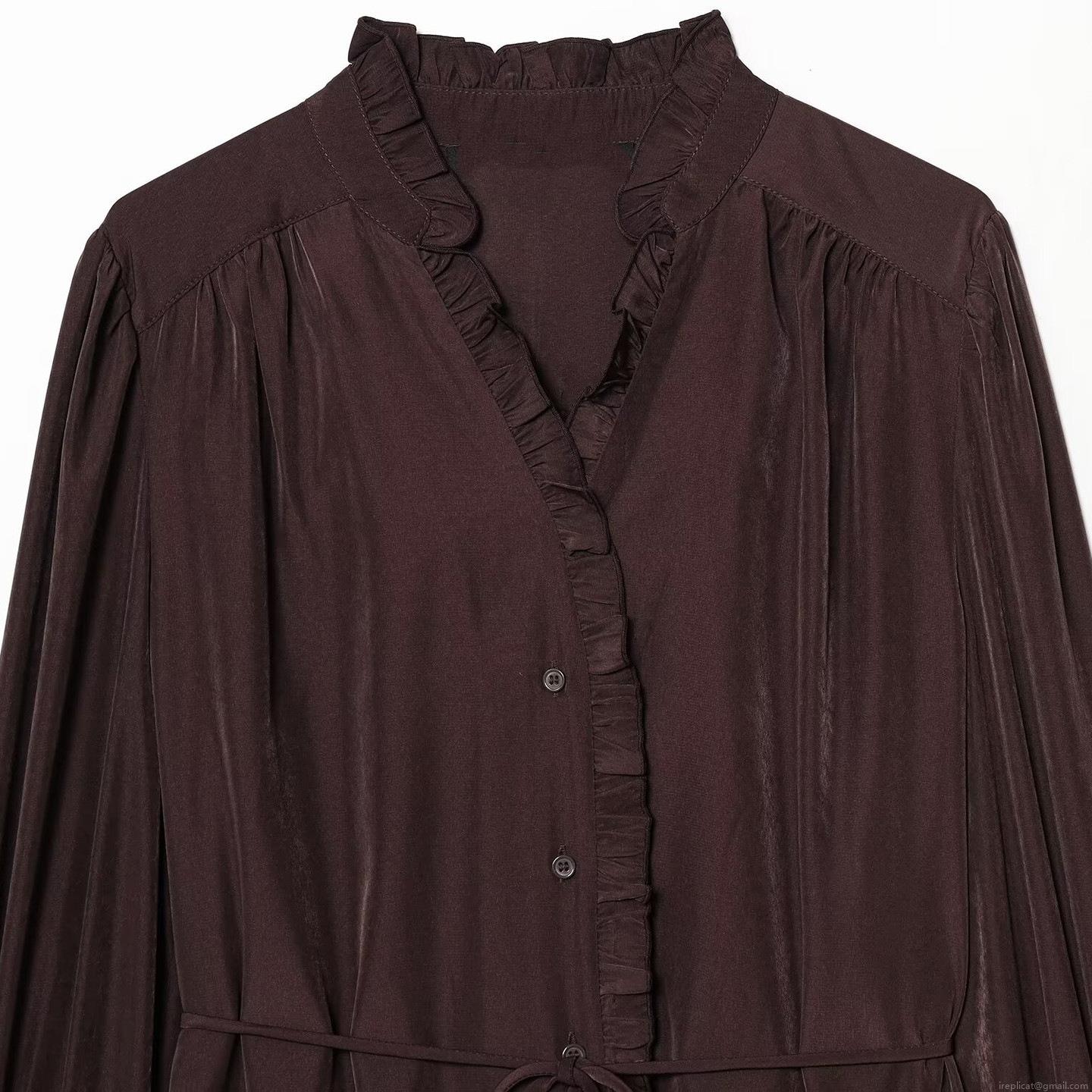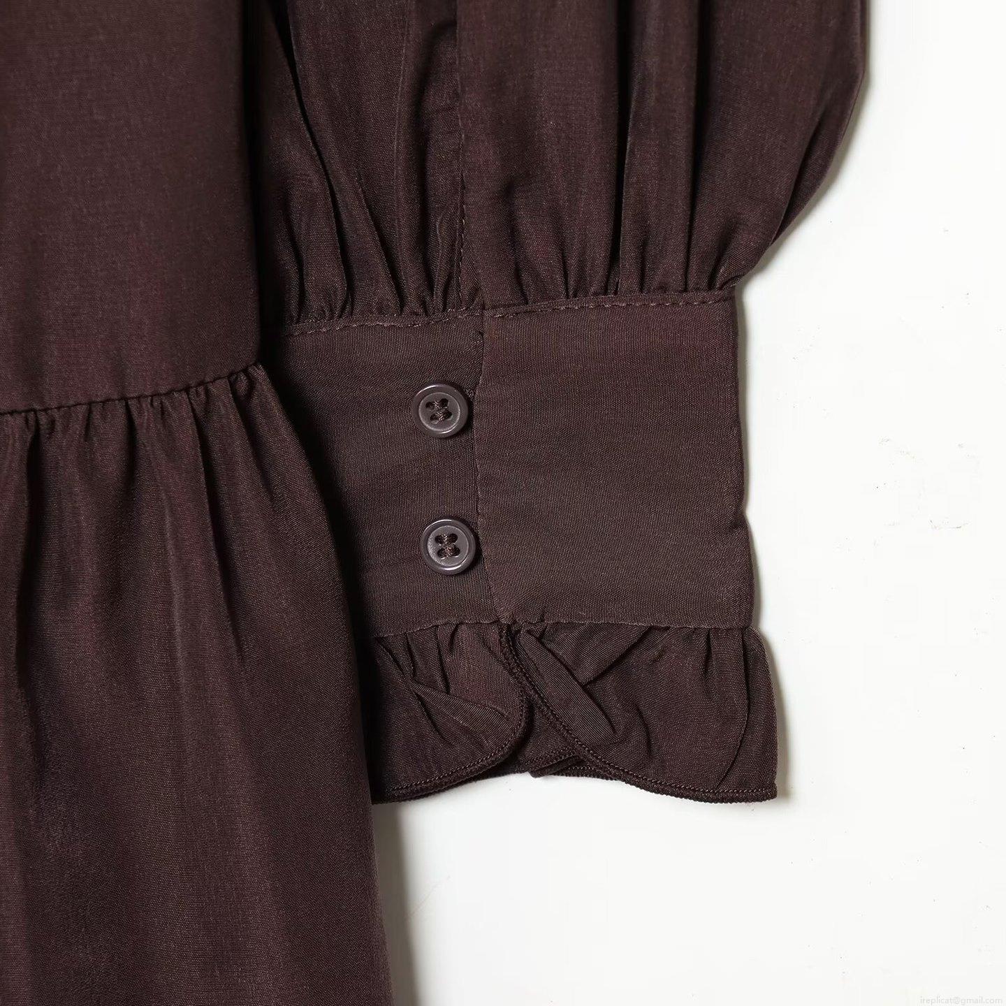 • Women Fashion Long Sleeve Ruffle Collar Midi Dress Casual Vacation Tiered Satin Cupro Cotton Blend Polka Dot Solid Tie Waist Dresses for Women
