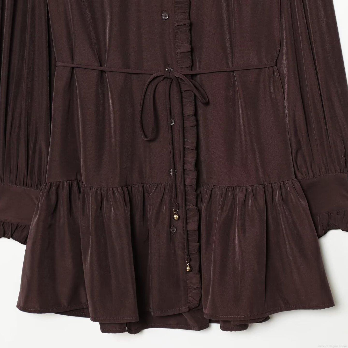 Women Fashion Long Sleeve Ruffle Collar Midi Dress Casual Vacation Tiered Satin Cupro Cotton Blend Polka Dot Solid Tie Waist Dresses for Women