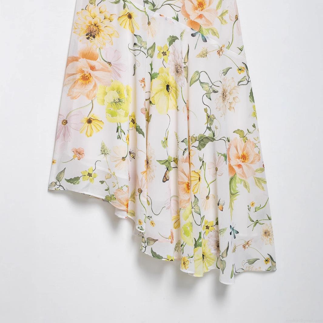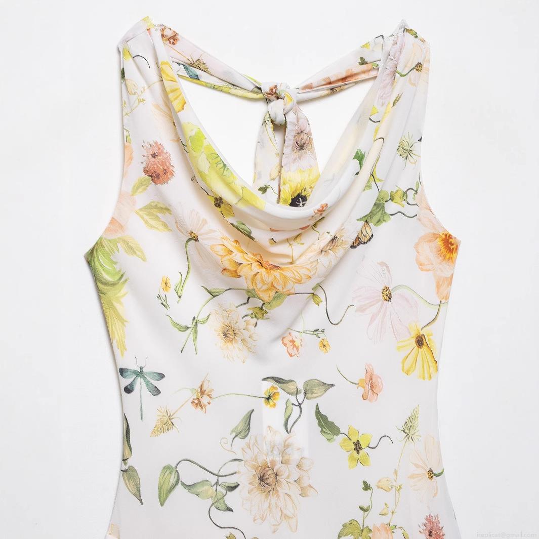 • Women Floral Cowl Neck Halter Dress Elegant 100% Polyester Back Tie Irregular Hem Sleeveless Midi Dress For Summer Vacation Party Socialite