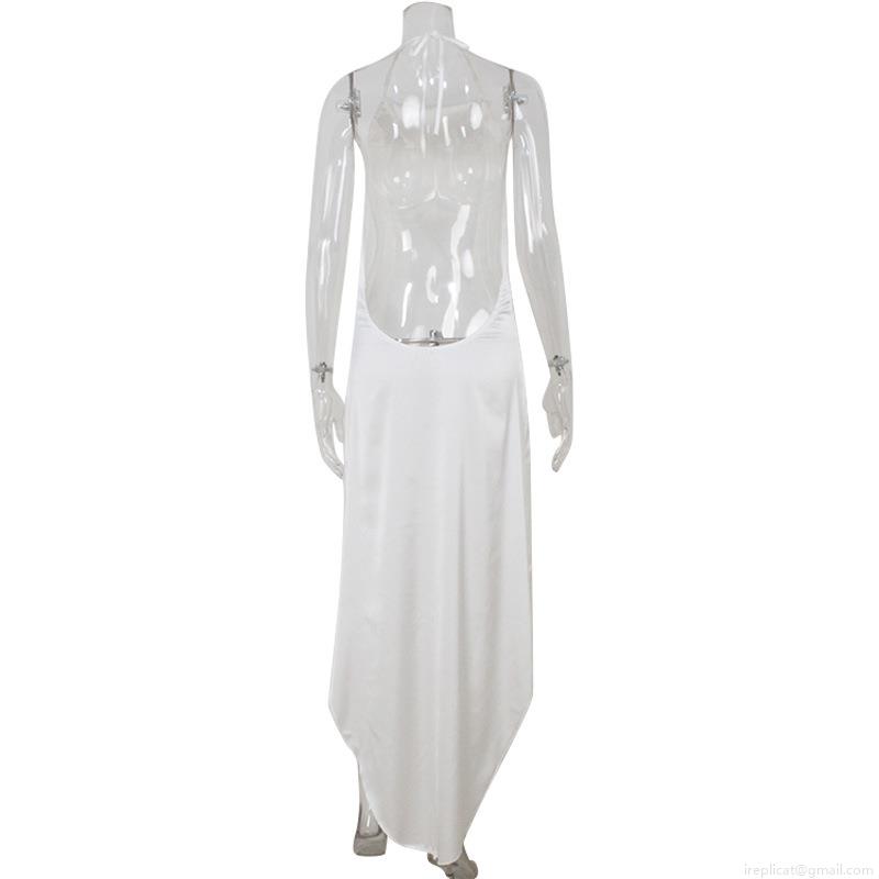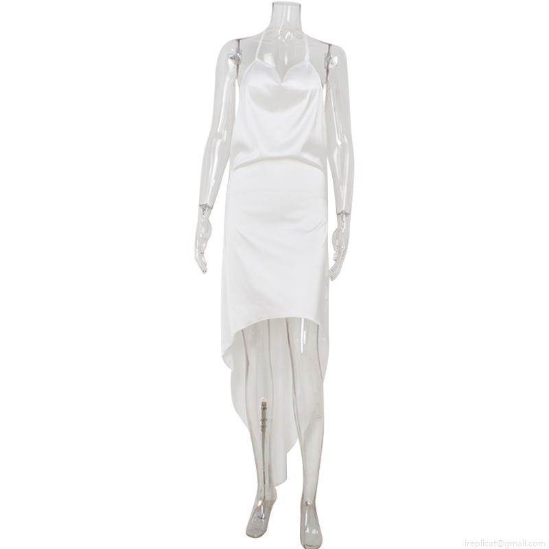 Solid Color, Shorter In Front And Longer In Back, Satin Finish, Irregular Hem, Halter Neck And Backless