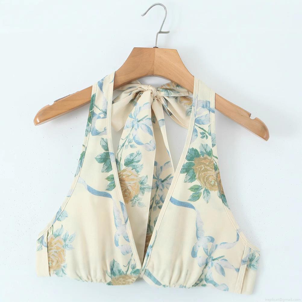 Bow, Floral Pattern, Bow Decoration, Ribbon, Rose, Straps, Neckband, Backless, Deep V-neck