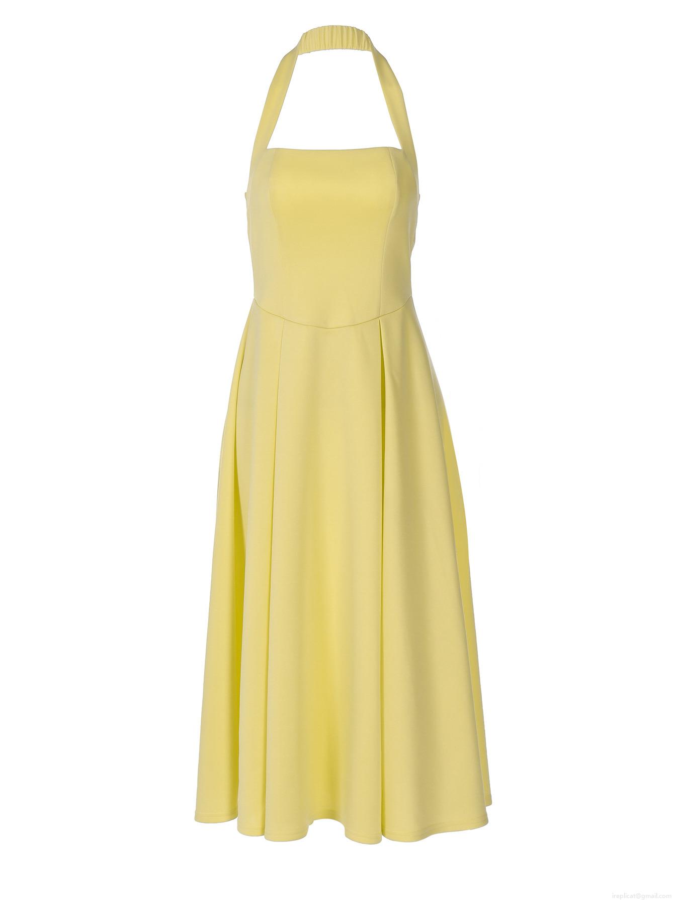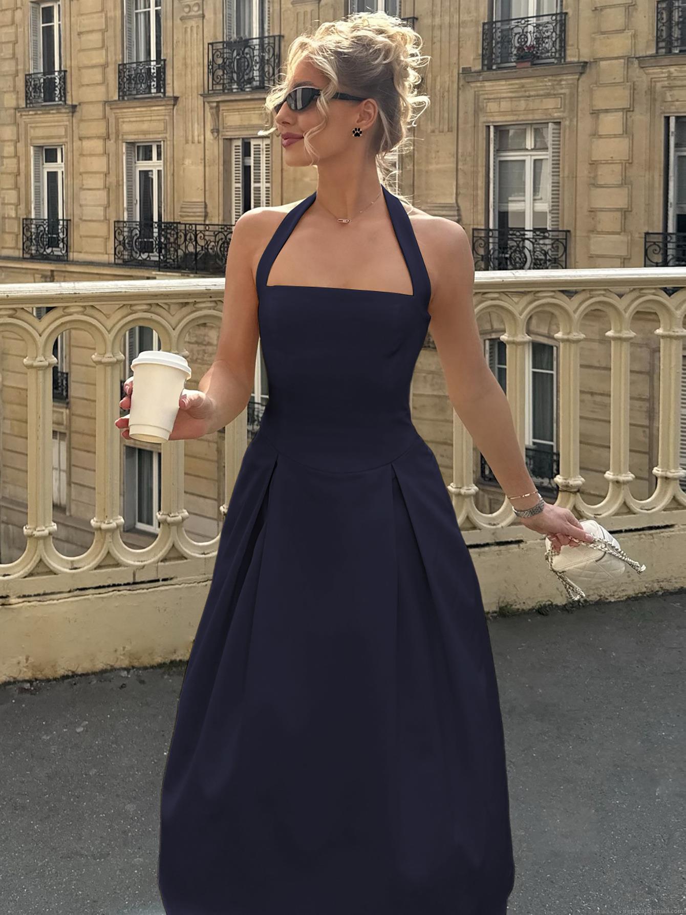 • Women Halter Neck Sexy Backless Midi Dress 95% Polyester 5% Spandex High Waist A-Line Swing Dress For Summer Party Vacation Elegant Celebrity Style