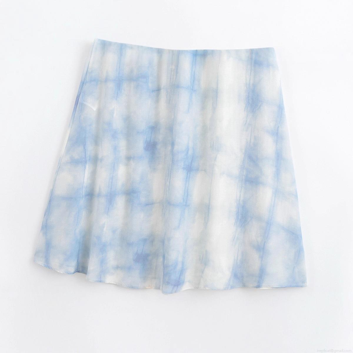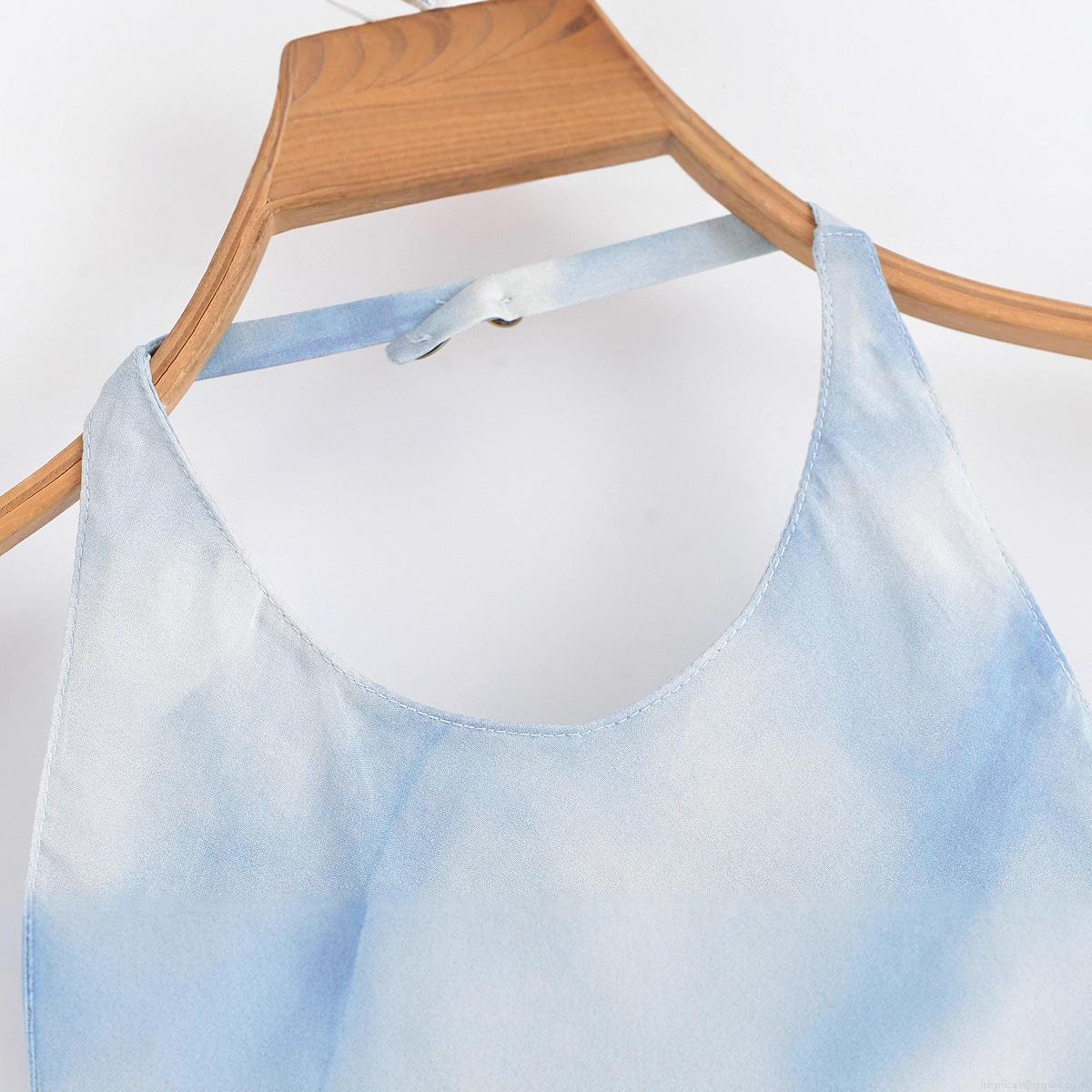 • Women Halter Neckless Backless Tie Dye Midi Dress 95% Polyester Blue White Gradient Sleeveless A-Line Sling Dress For Summer Vacation Party Streetwear Fashion
