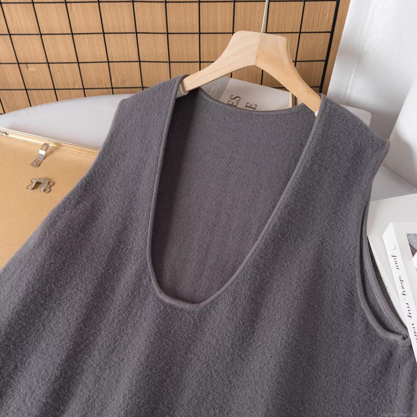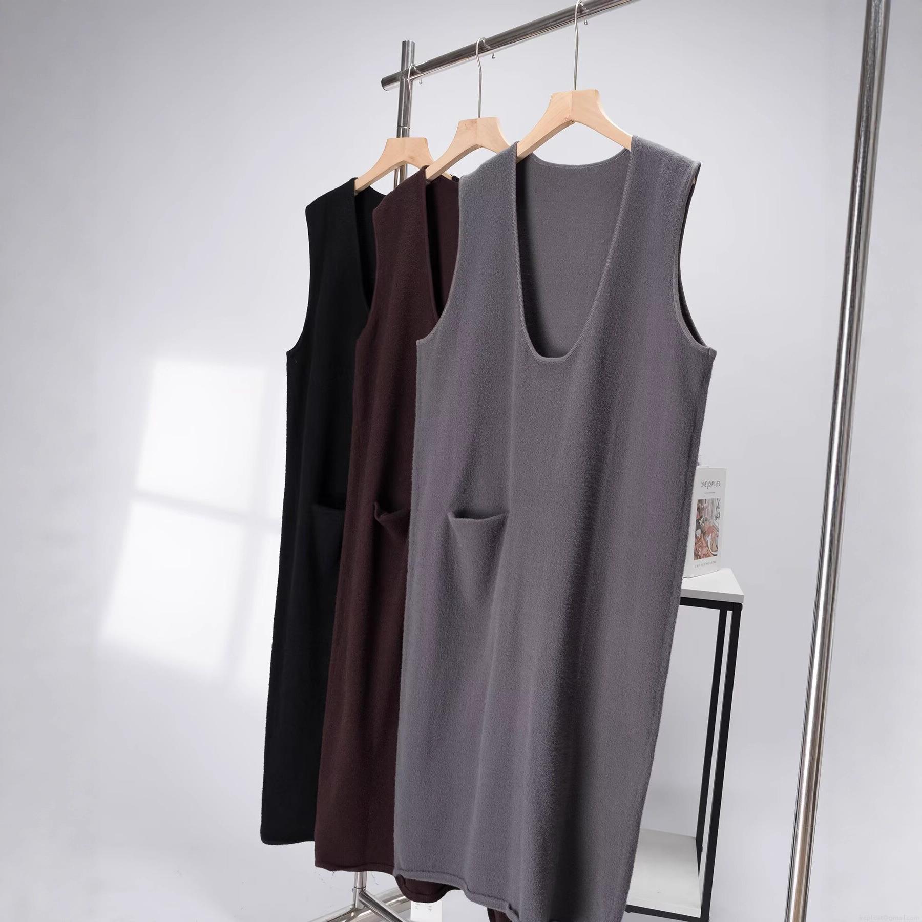 • Women Minimalist Sleeveless Knit Midi Dress Deep U-Neck Knitted Polyester Spandex Blend Dress With Pockets Casual Daily Loose Fit A-Line Autumn Clothing