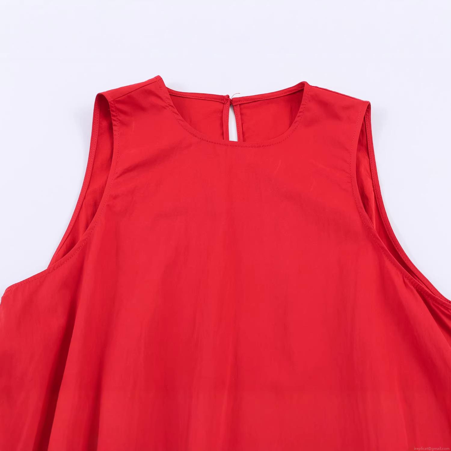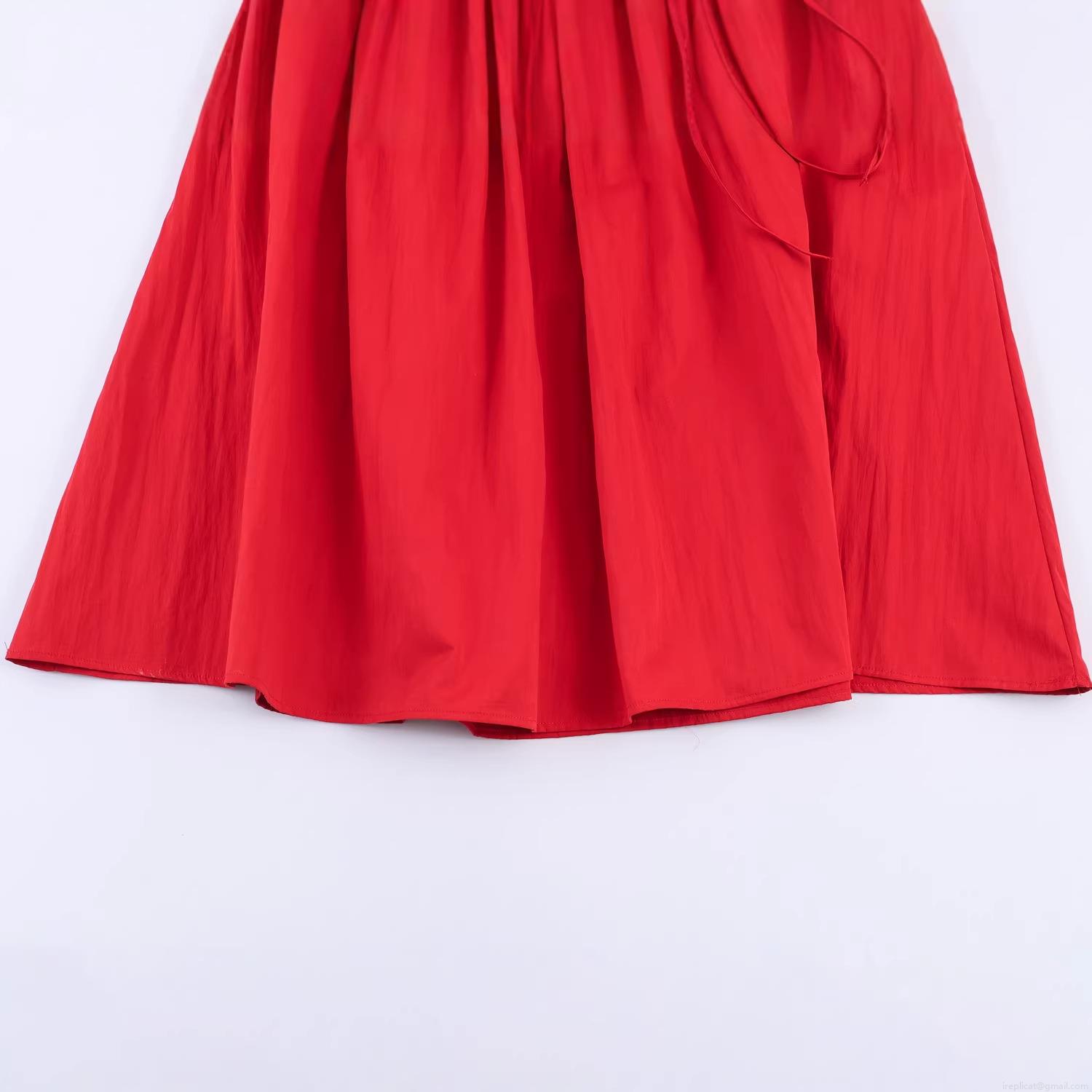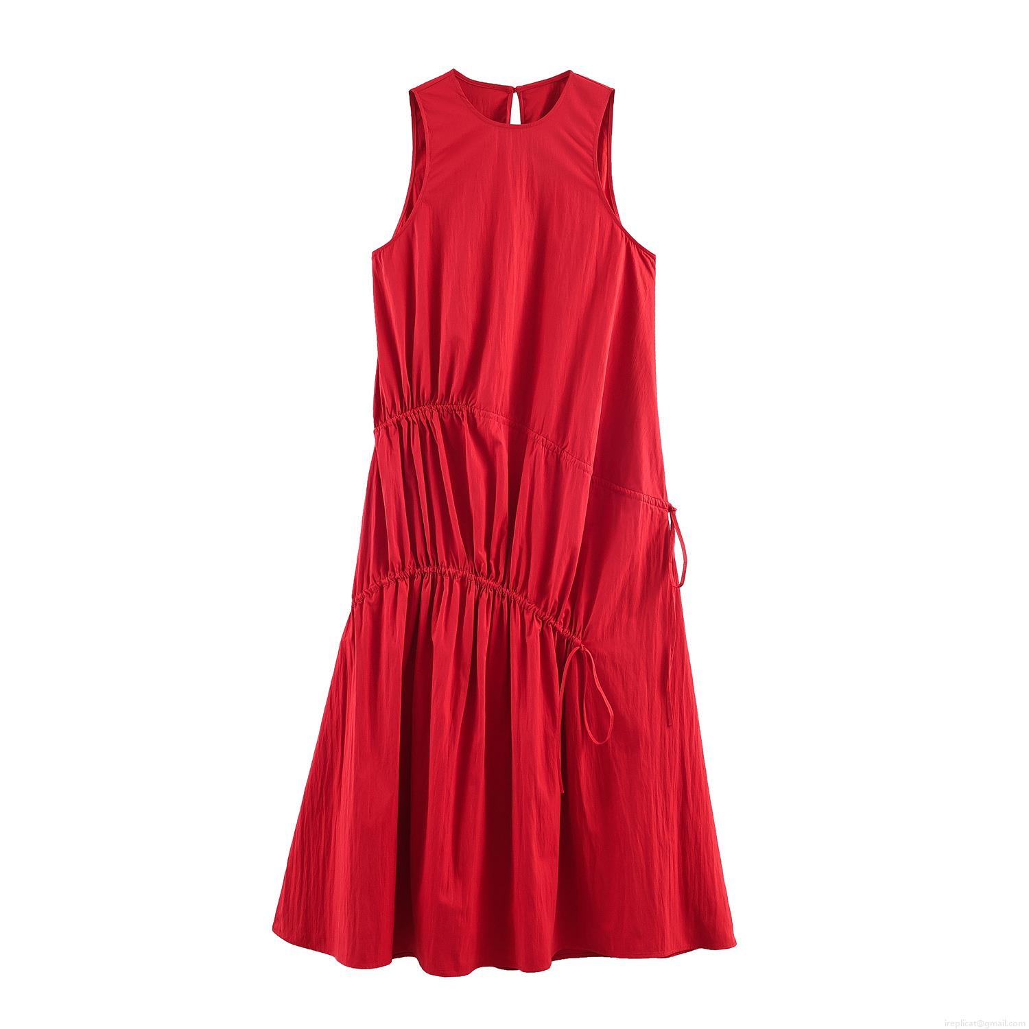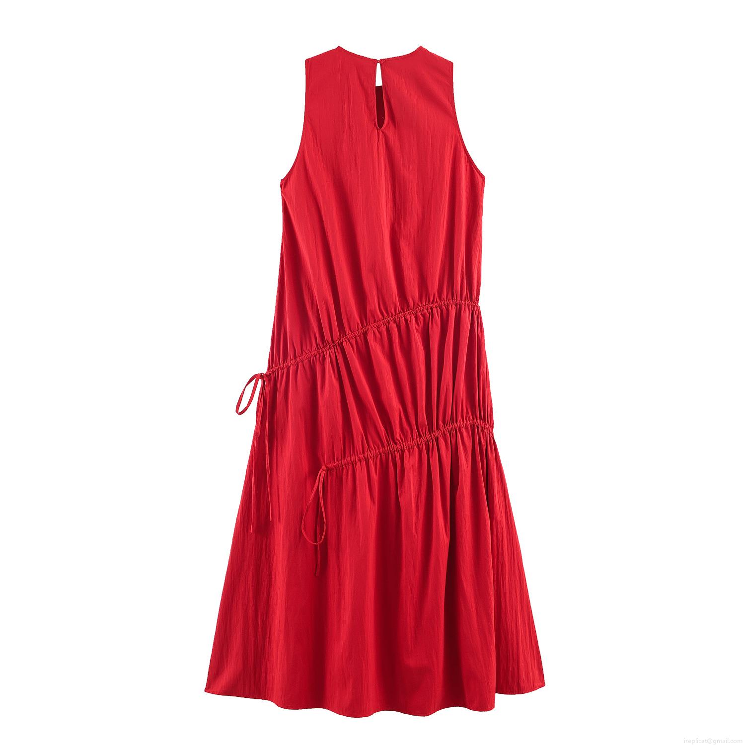 • Women Red Sleeveless Midi Dress Polyester Blend Drawstring Ruching A-Line Party Sundress Sexy Clubwear Solid Color Summer Casual Elegant Outfit