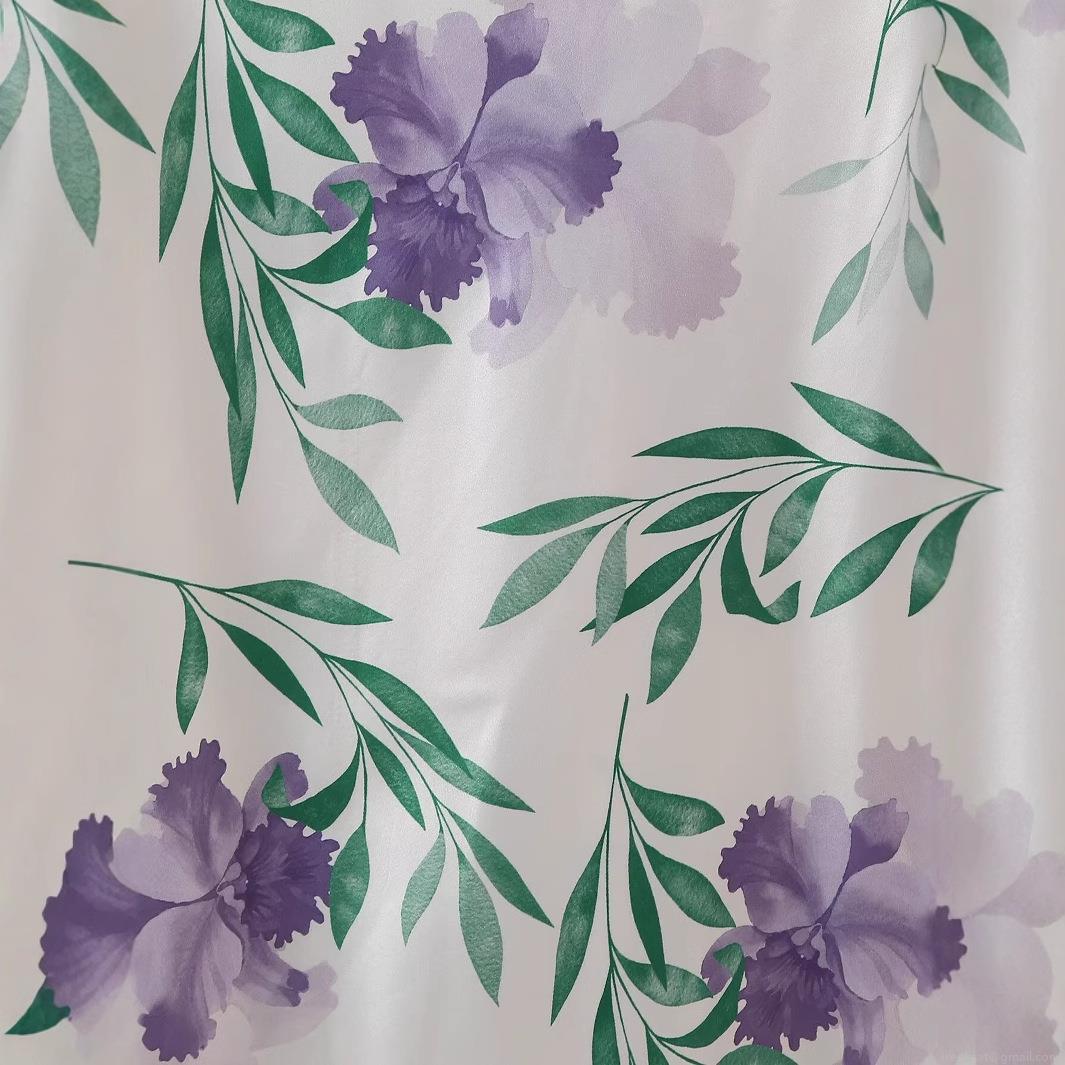 Purple Orchid, Floral Pattern, Neckband, Lace, Backless, Green Leaf