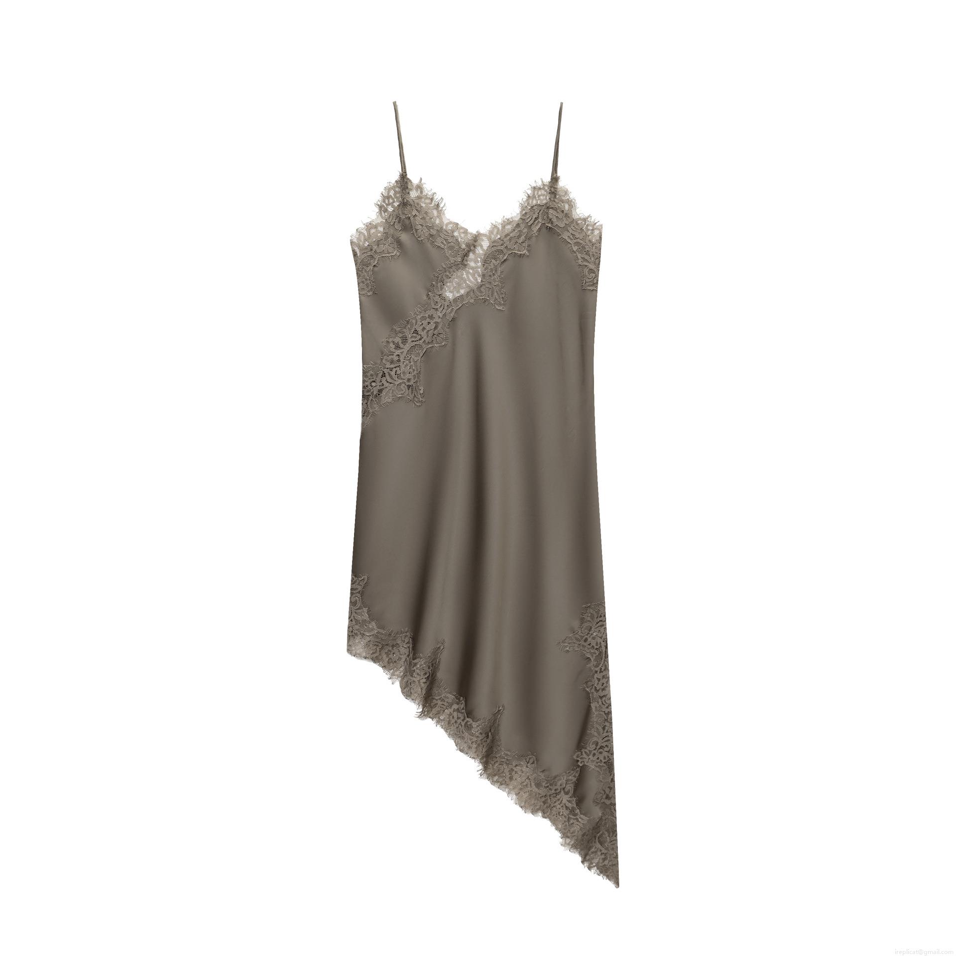 • Women Satin Lace Patchwork Cami Dress Sexy V Neck Sleeveless Irregular Hem Midi Sling Dress Solid Color Streetwear Party Club Dress