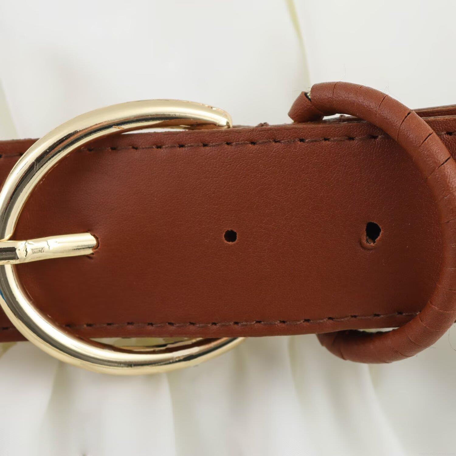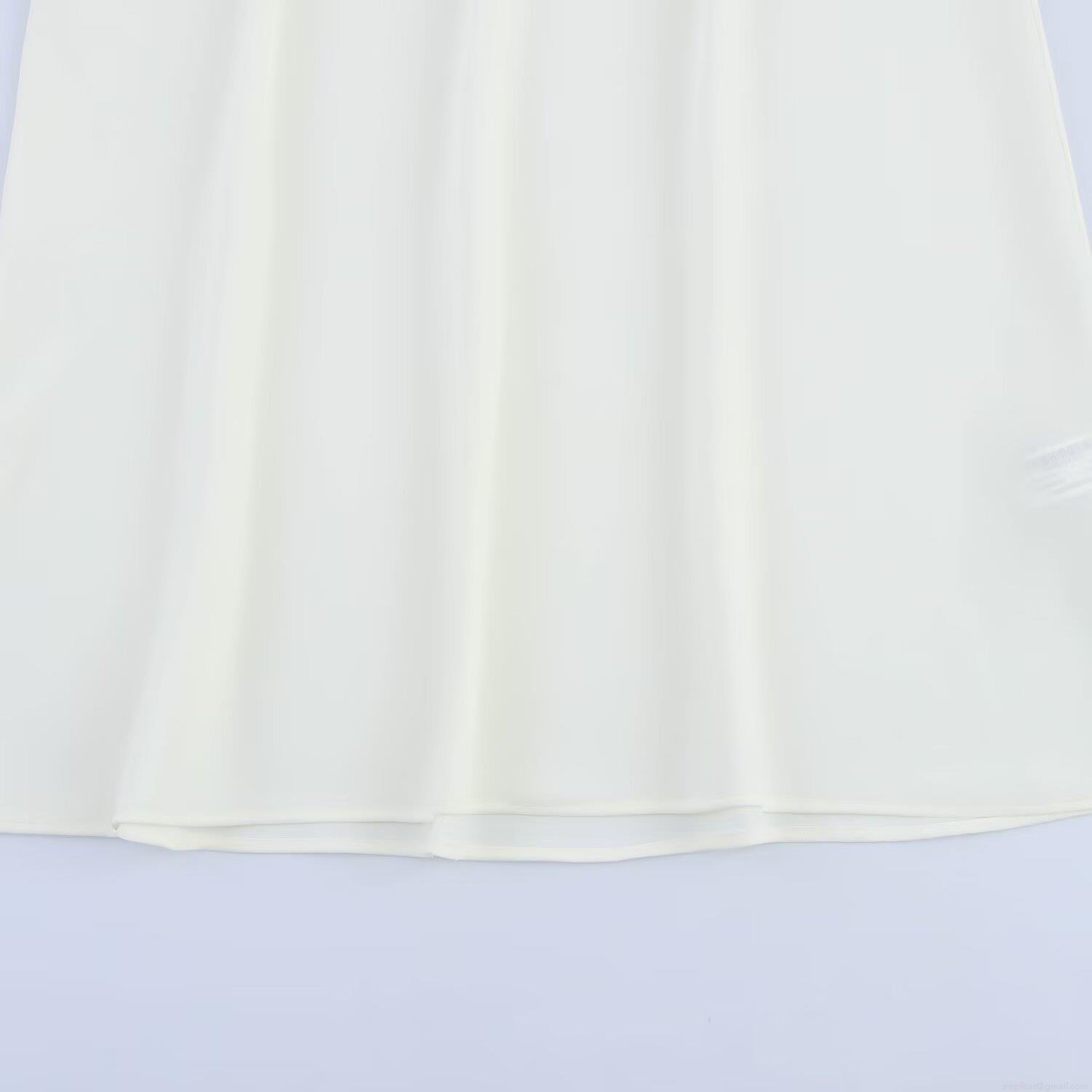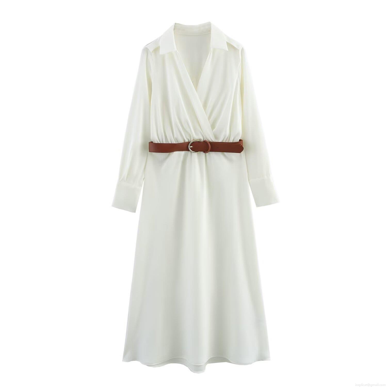 • Women Satin Long Sleeve Midi Dress With Belt Elegant Solid White A-Line High Waist Shirt Collar Button Down Polyester Spandex Office Dress For Ladies