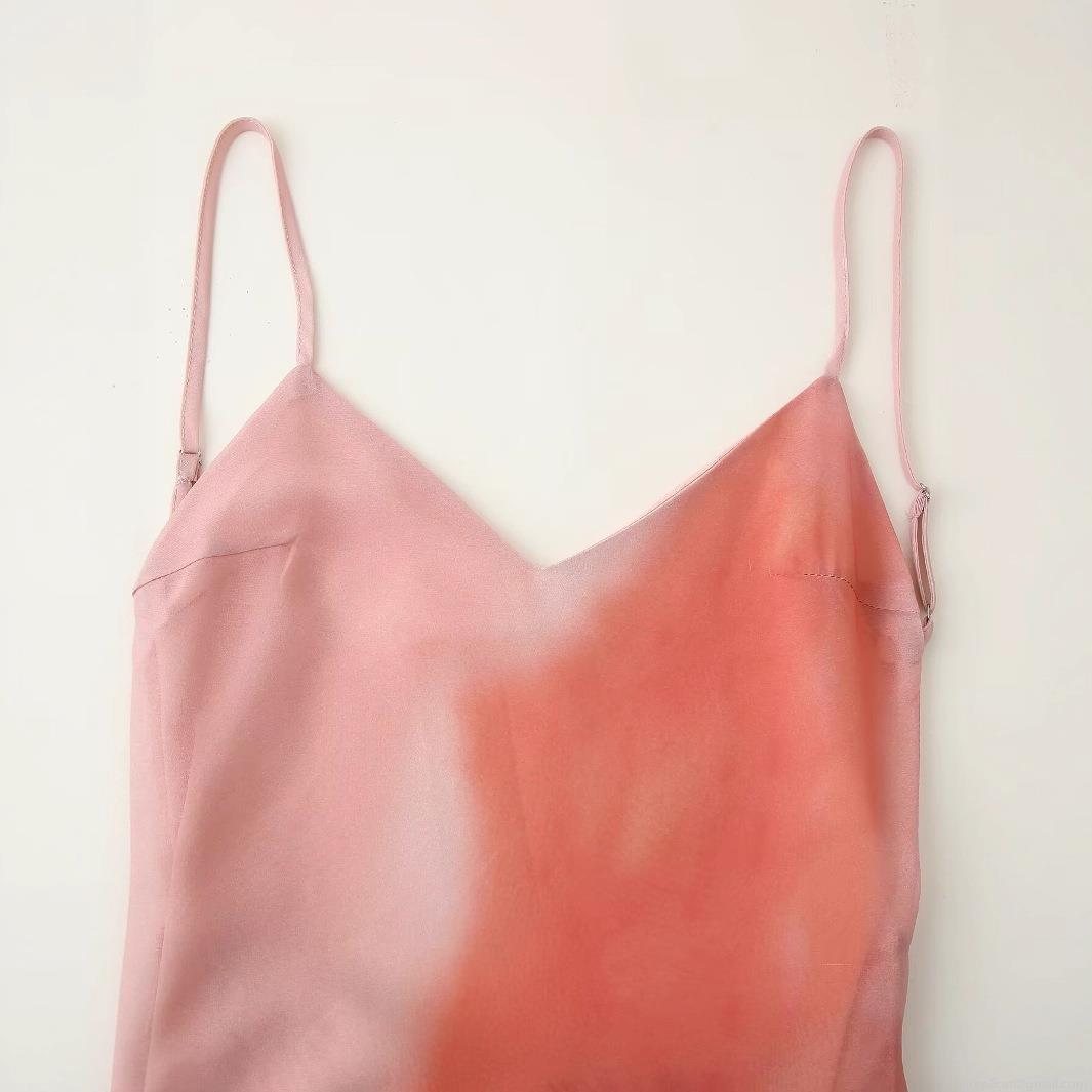 • Women Sexy Backless Halter Neck Midi Dress Pink Gradient Tie-Dye Floral Print Satin Slip Dress For Evening Party Streetwear Clubwear