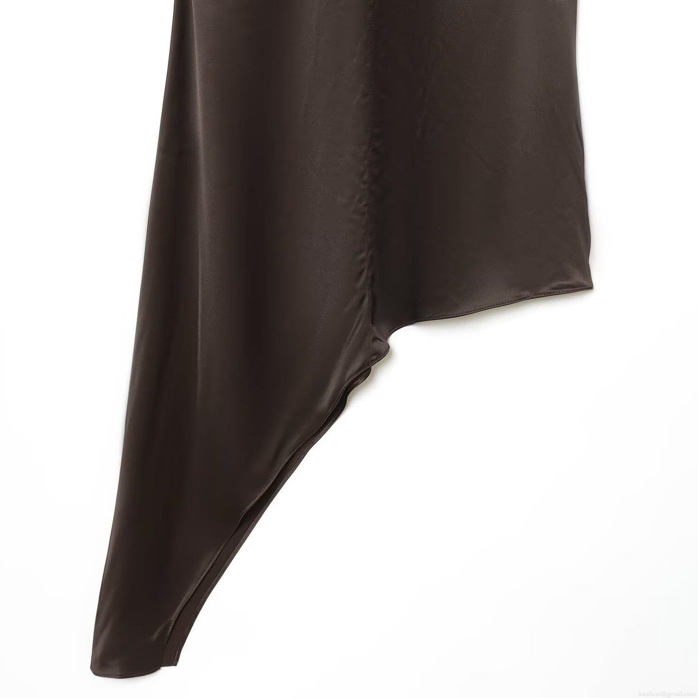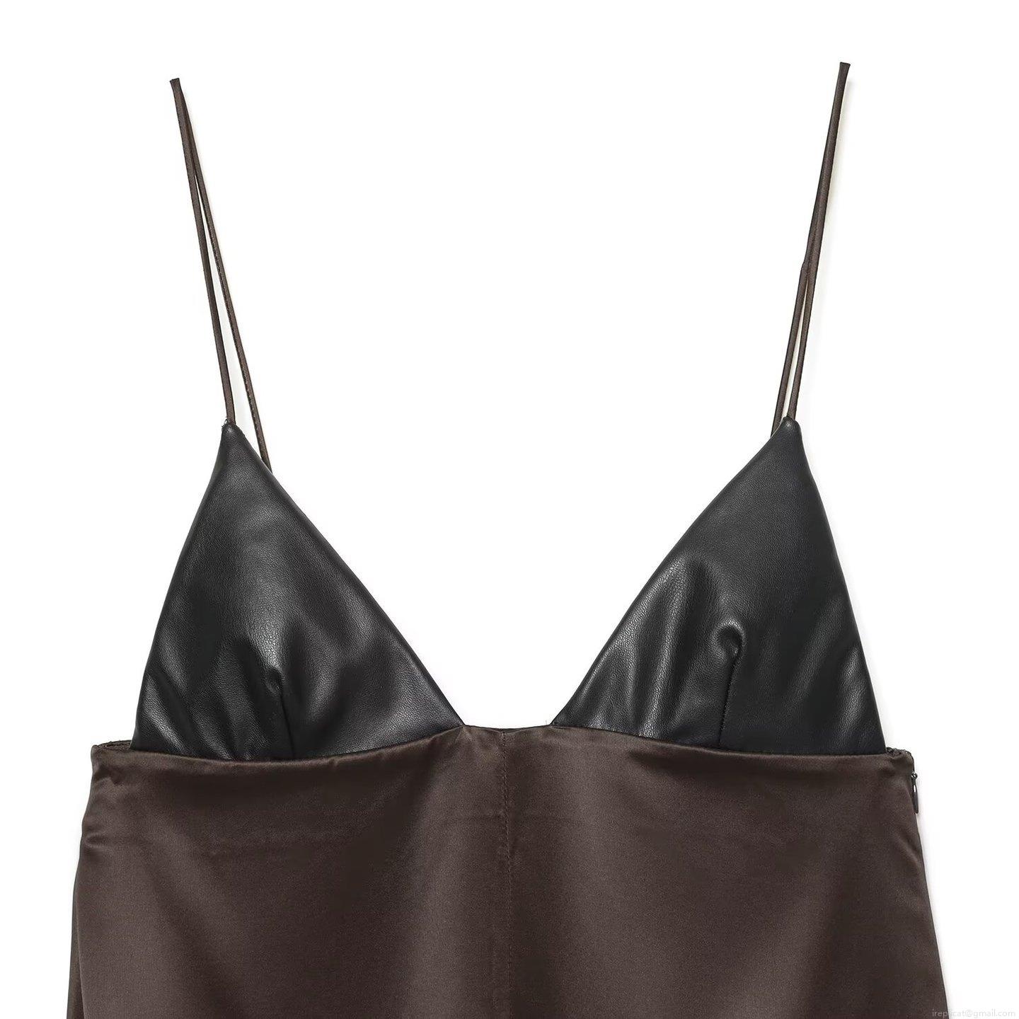 • Women Sexy Backless Patchwork Cami Dress Asymmetrical Acetate Satin Faux Leather Midi Dress For Party Club Night Out Summer Slim Fit Cocktail Gown