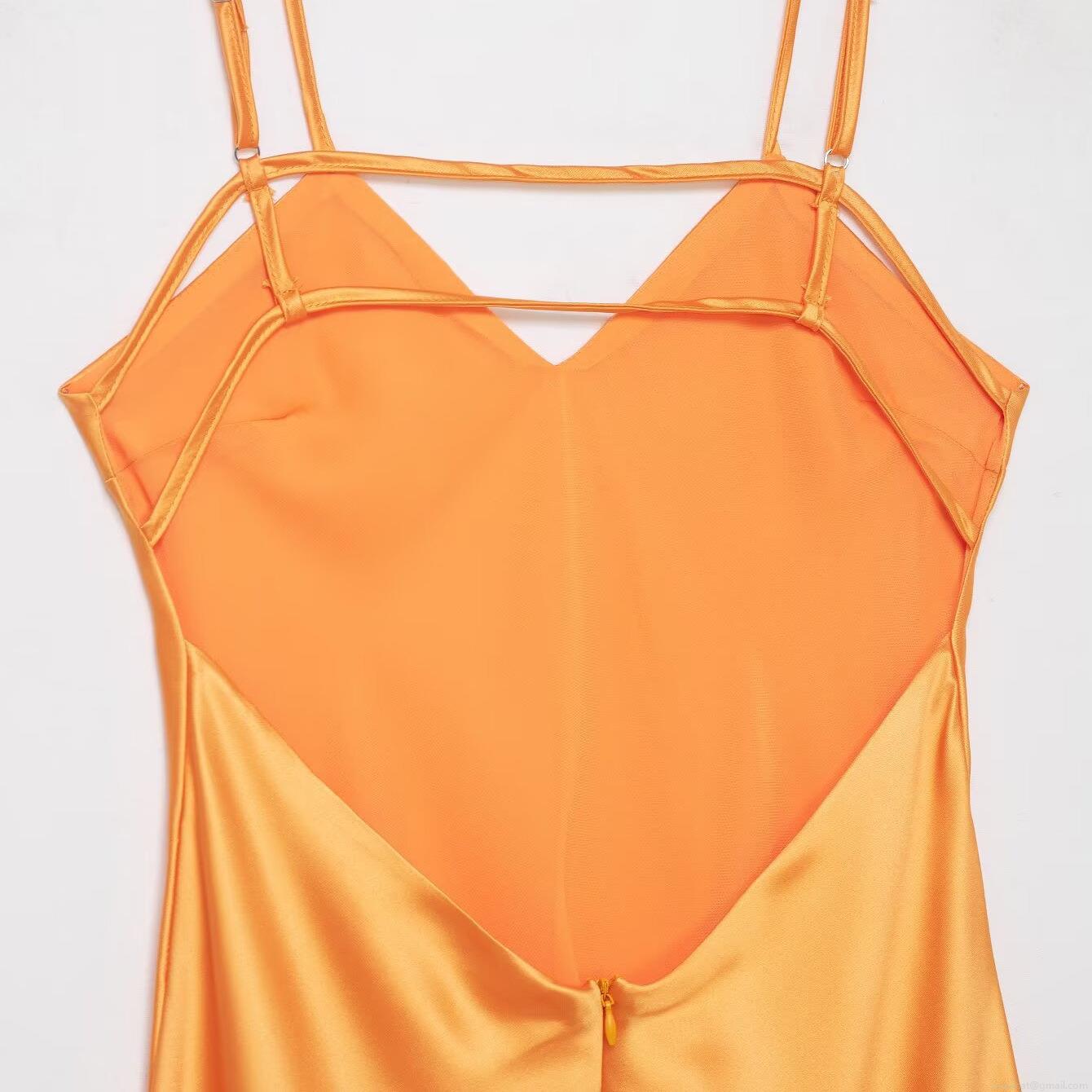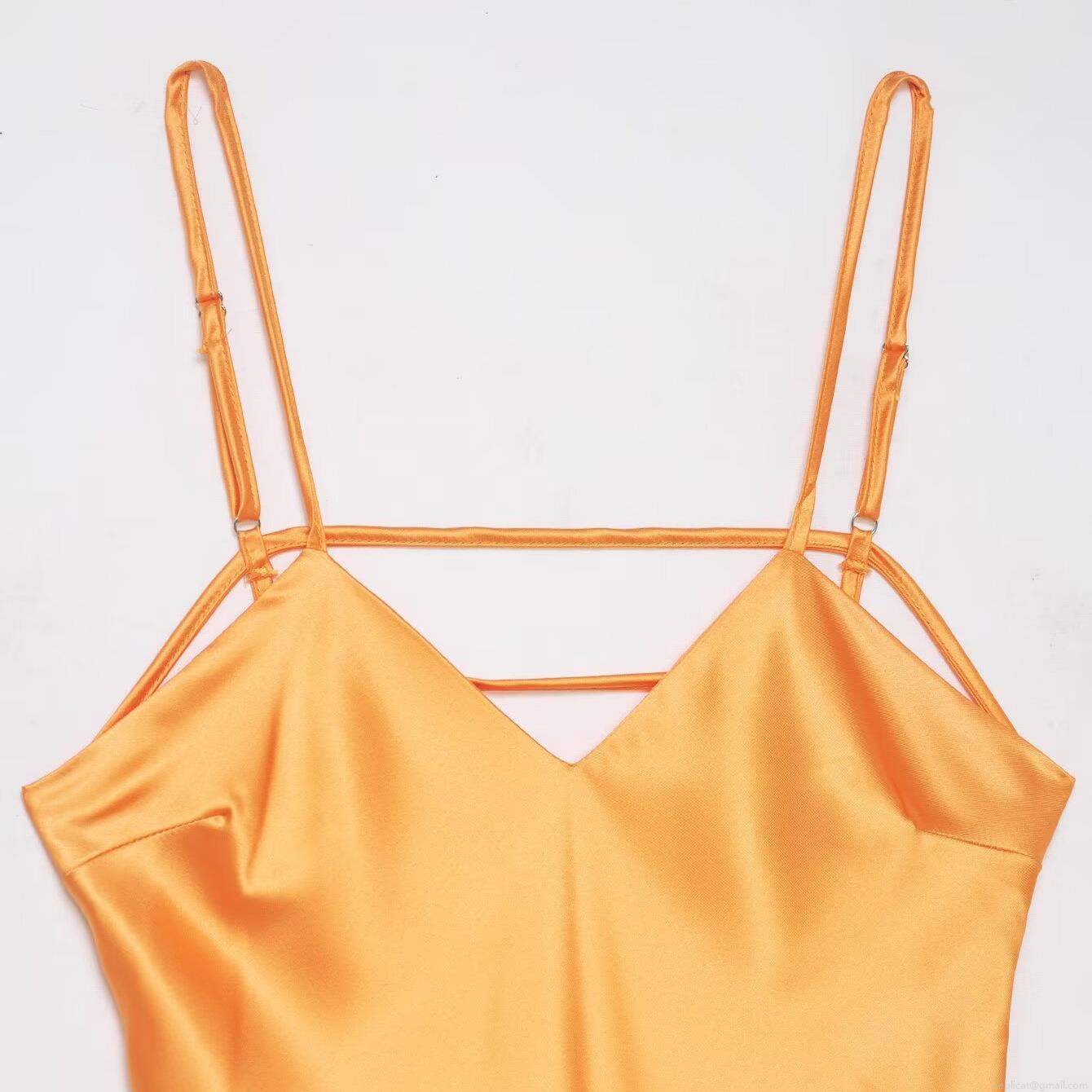 Solid Color, Backless, Cross Straps, Satin Texture, Deep V-neck, Thin Straps
