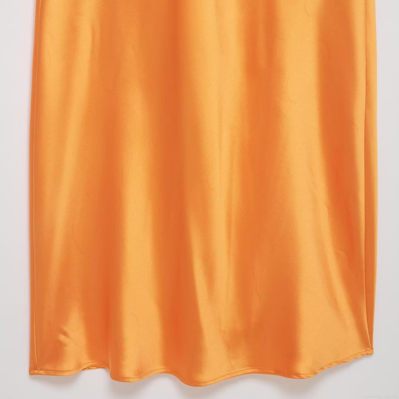 • Women Sexy Backless Satin Midi Dress Elegant V-Neck Spaghetti Strap High Waist Silk-Like Party Evening Dress 100% Polyester Sleeveless Summer Cocktail Dress