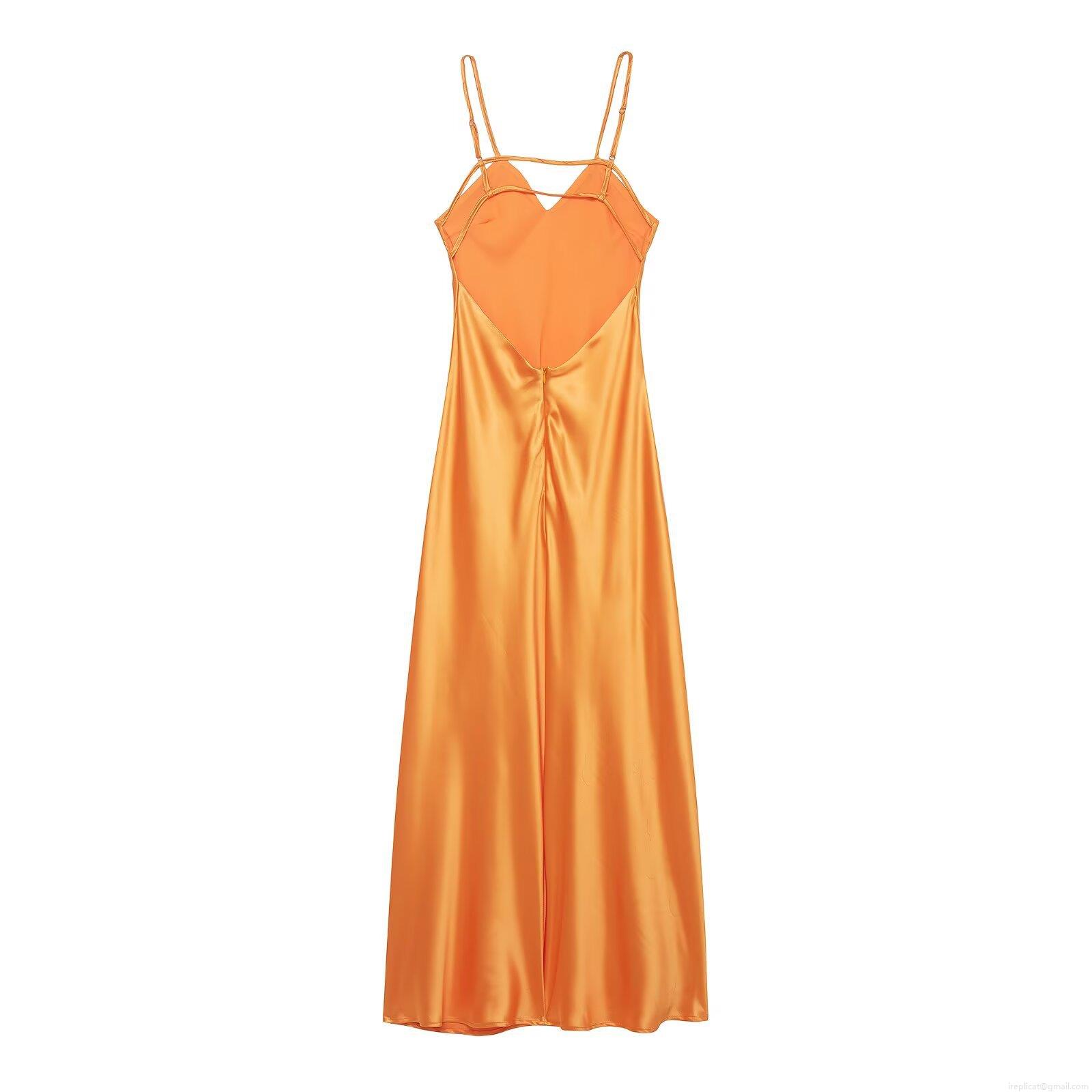 Women Sexy Backless Satin Midi Dress Elegant V-Neck Spaghetti Strap High Waist Silk-Like Party Evening Dress 100% Polyester Sleeveless Summer Cocktail Dress