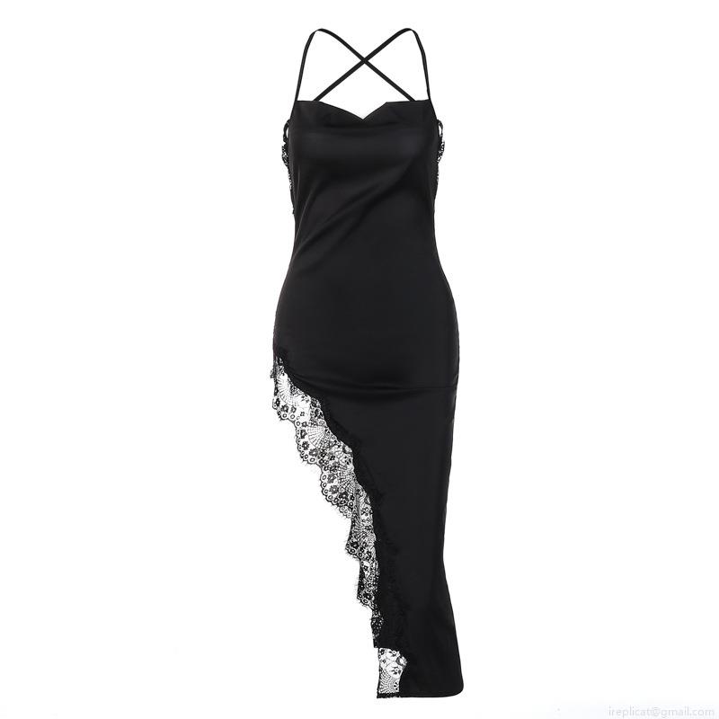 Solid Color, Backless, Lace Patchwork, Cross Shoulder Straps, High Fork, Satin Finish