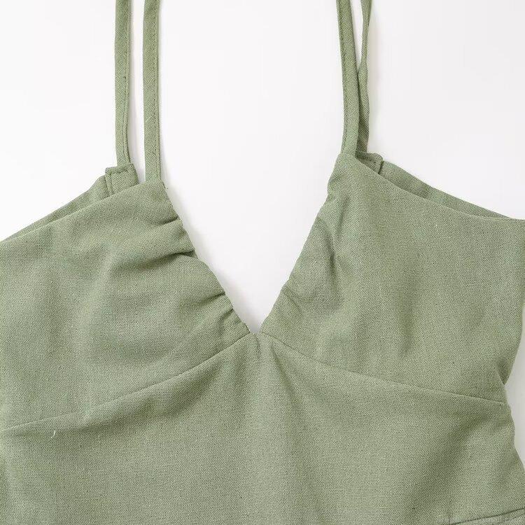 Women Sexy Backless V-Neck Cami Midi Dress Front Slit Bow Tie Back Cotton Blend Summer Vacation Party Dress Avocado Green Solid Color Sleeveless Slinky Dress