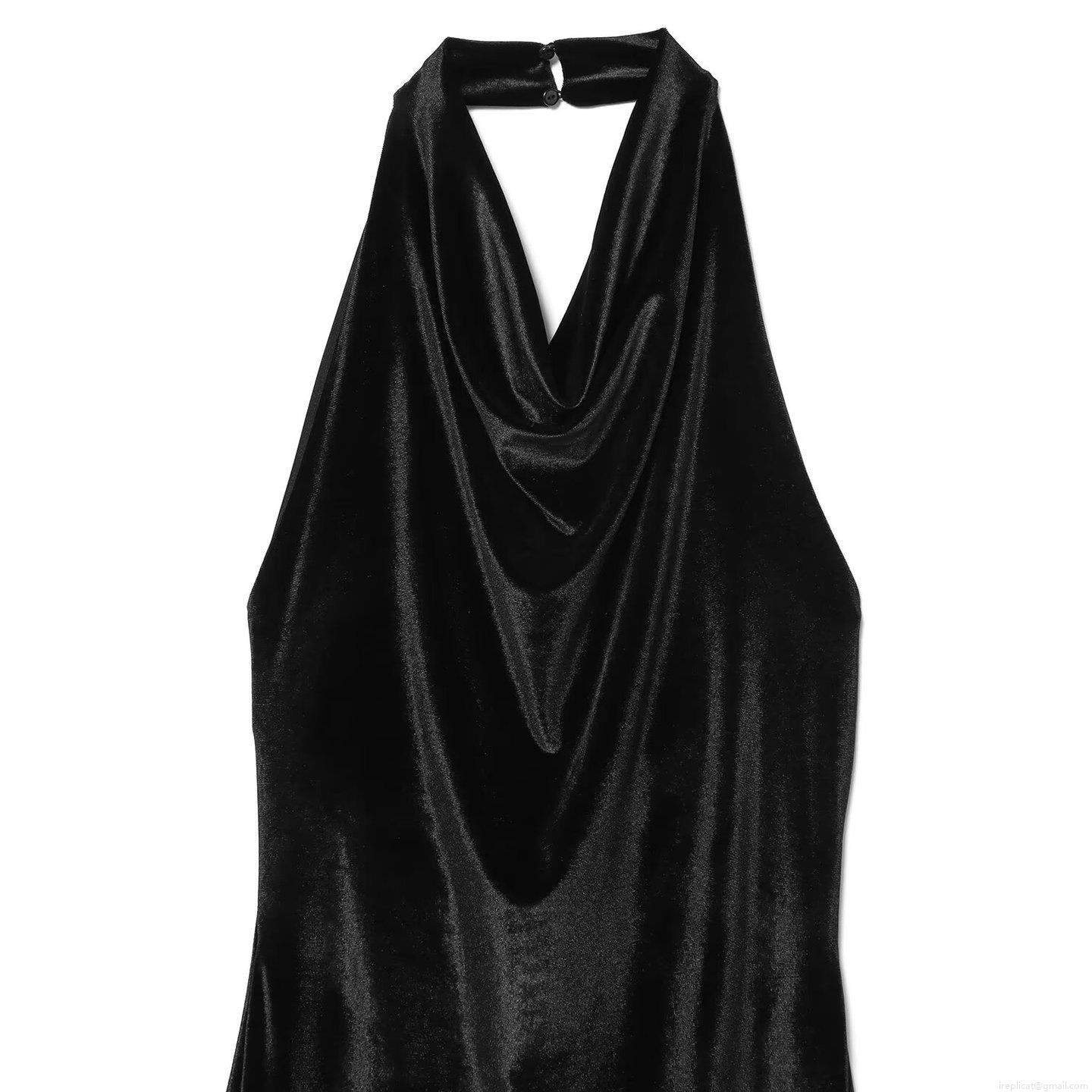 • Women Sexy Black Velvet Lace Patchwork Halter Midi Dress Backless Sleeveless Slim Fit High Waist Evening Party Club Bodycon Long Dress