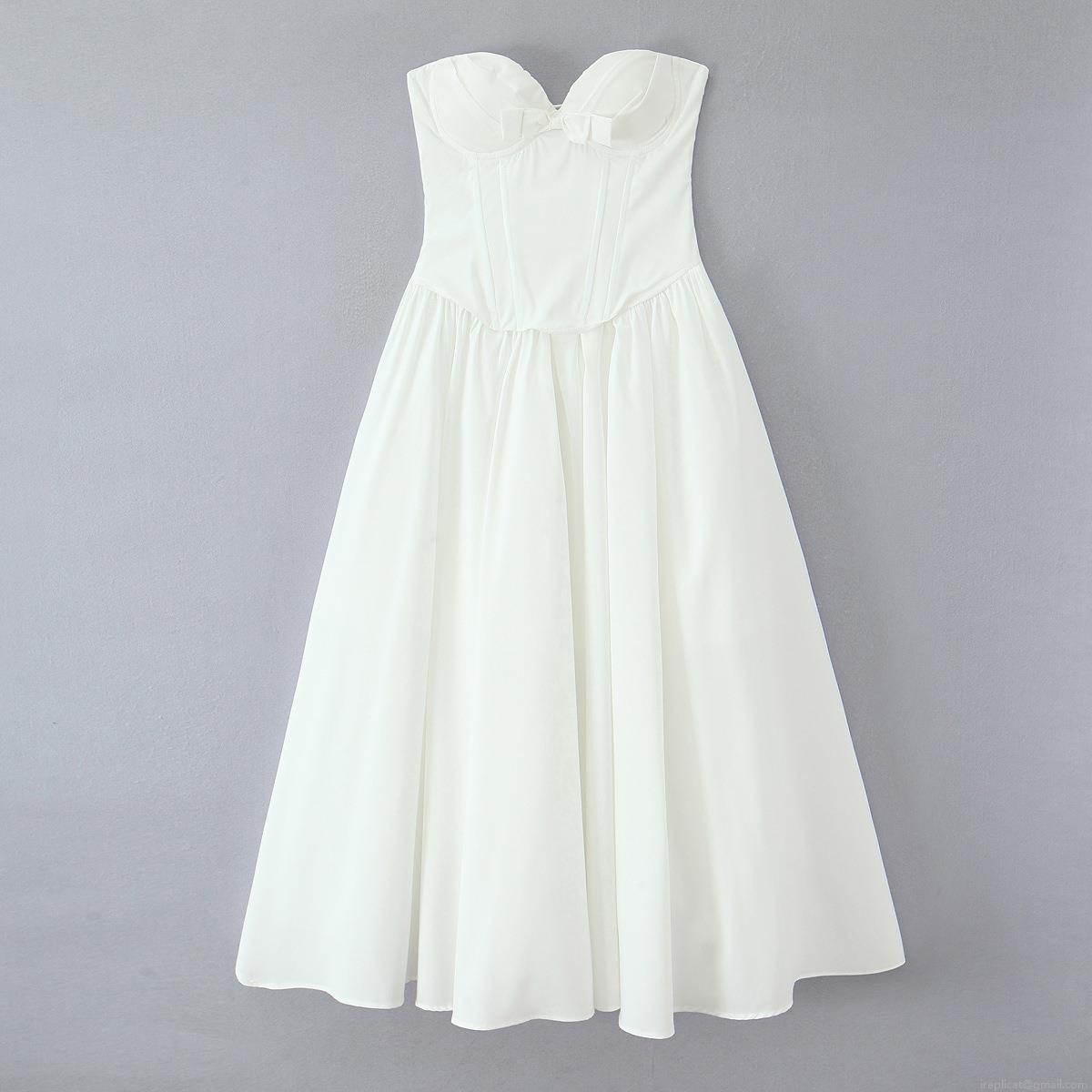 Solid Color, Bow, Pleats, Off-shoulder, Big Swing, Herringbone Waist Trainer, Heart-shaped Neckline