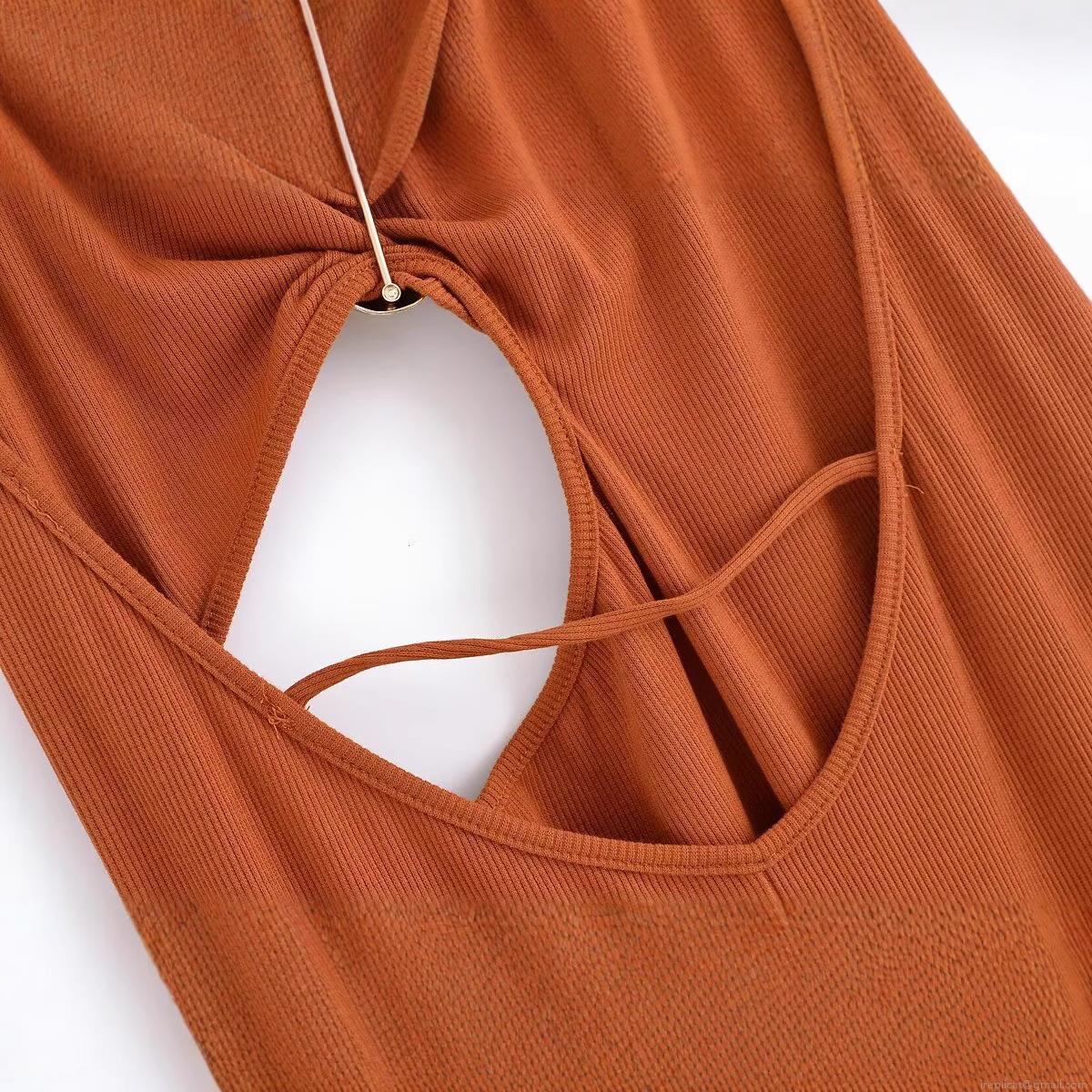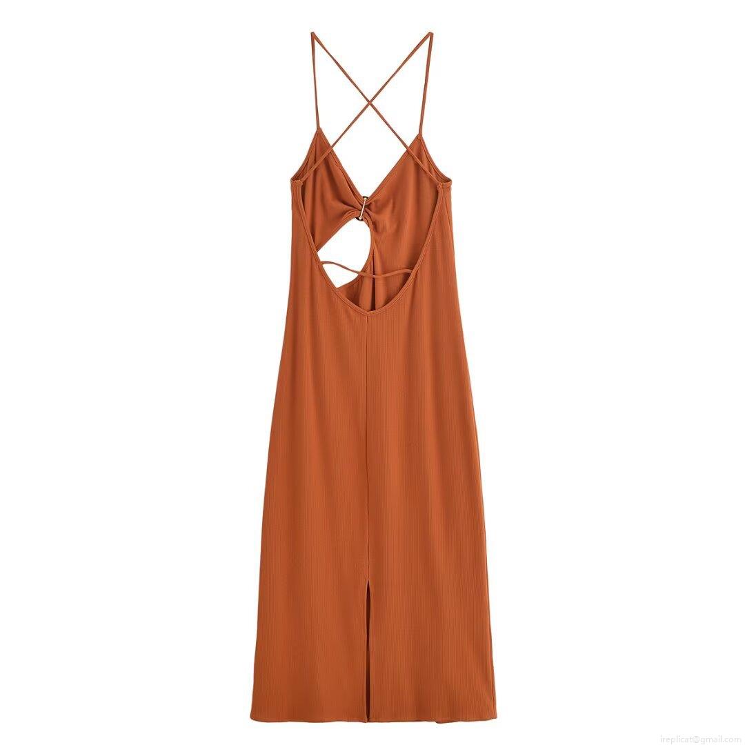 • Women Sexy Cut Out Knit Maxi Dress Backless Metal Ring Cross Straps Ribbed Solid Color Summer Party Bodycon Dress For Ladies