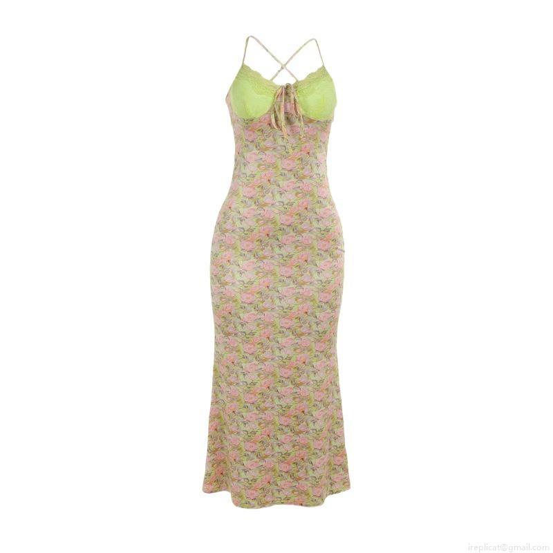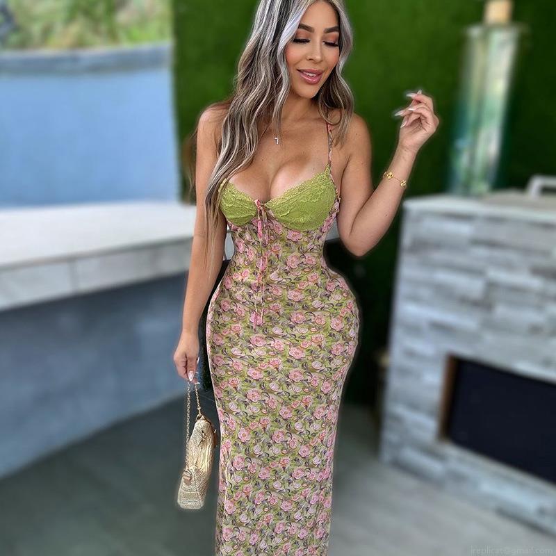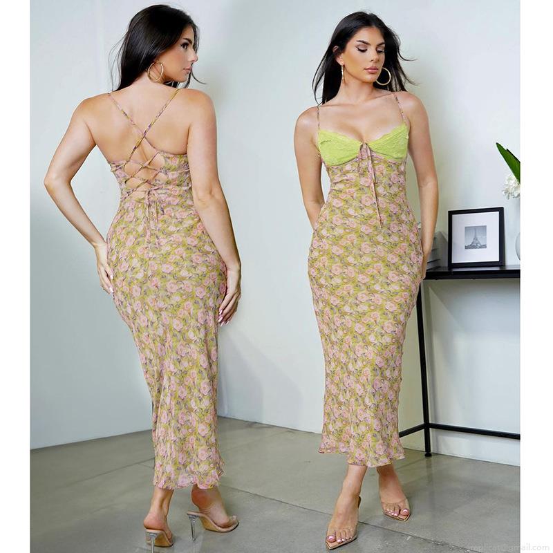 • Women Sexy Floral Lace Patchwork Cami Maxi Dress Backless Lace Up V Neck Slim Fit Summer Vacation Party Club Evening Long Dress Polyester Spandex