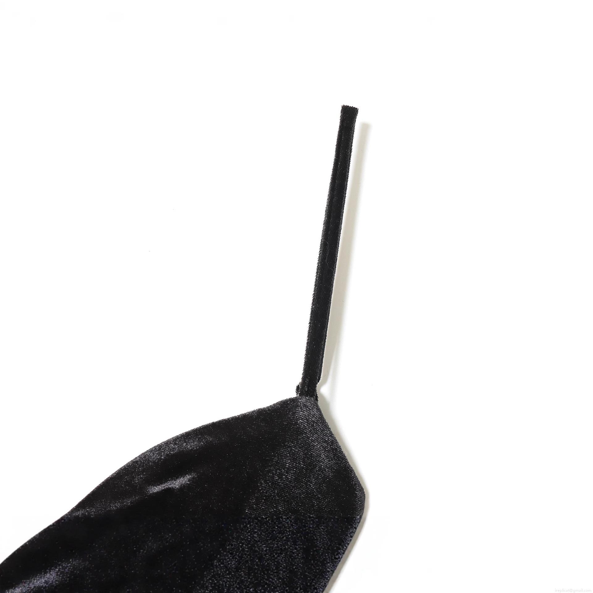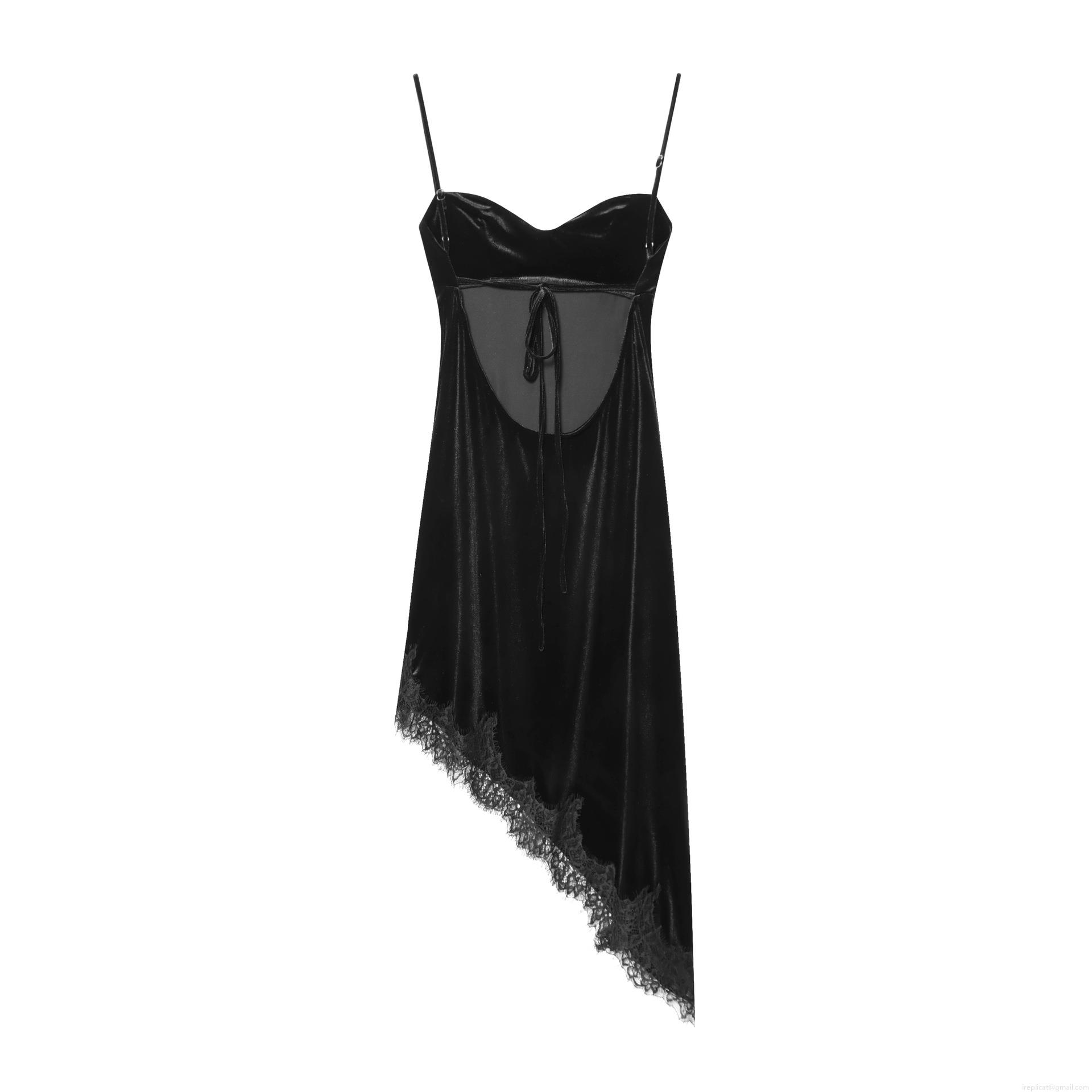 • Women Sexy French Cowl Neck Velvet Slip Dress Lace Patchwork Irregular Hem Backless Tie Bodycon Midi Dress For Party Evening Clubwear