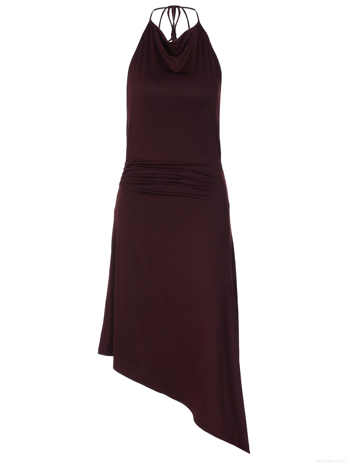 Solid Color, Asymmetric, Pleats, Waist shaping, Neckband, Backless, Stack Collar