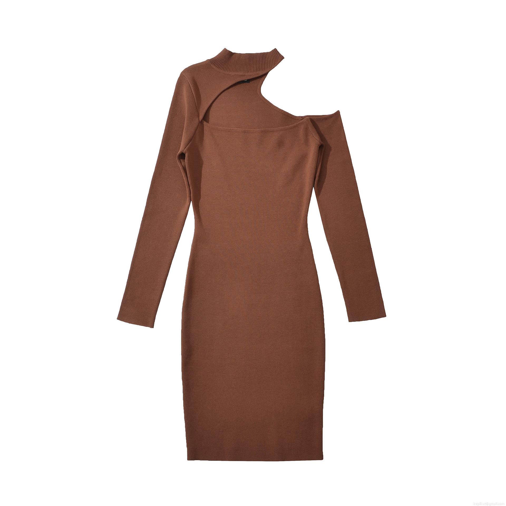 • Women Sexy Hollow Out One Shoulder Ribbed Knit Midi Dress Long Sleeve Solid Color Slim Fit Bodycon Sweater Dress For Spring Autumn